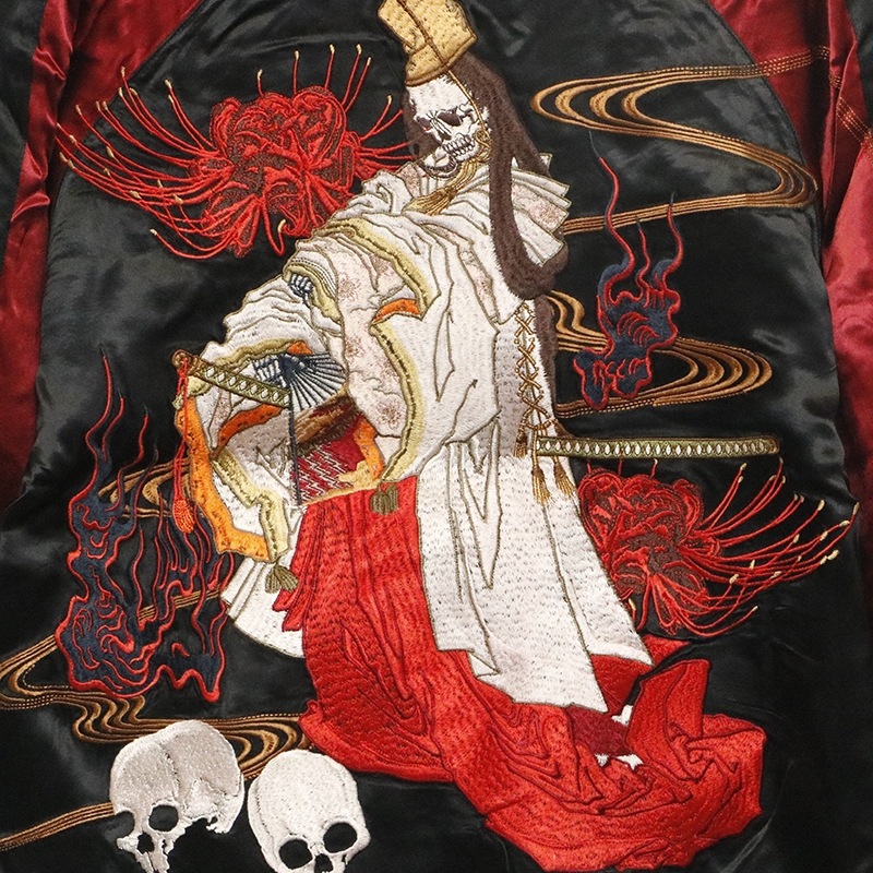 白拍子 髑髏 柄 刺繍 和柄 リバ-シブル スカジャン 古都古都別注です。