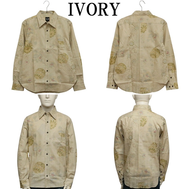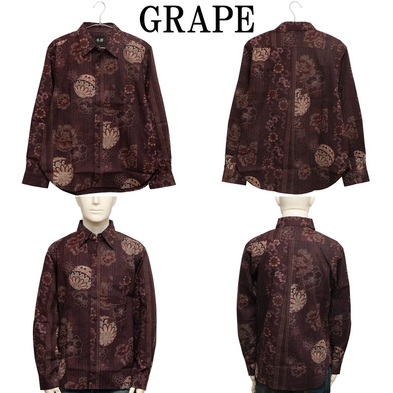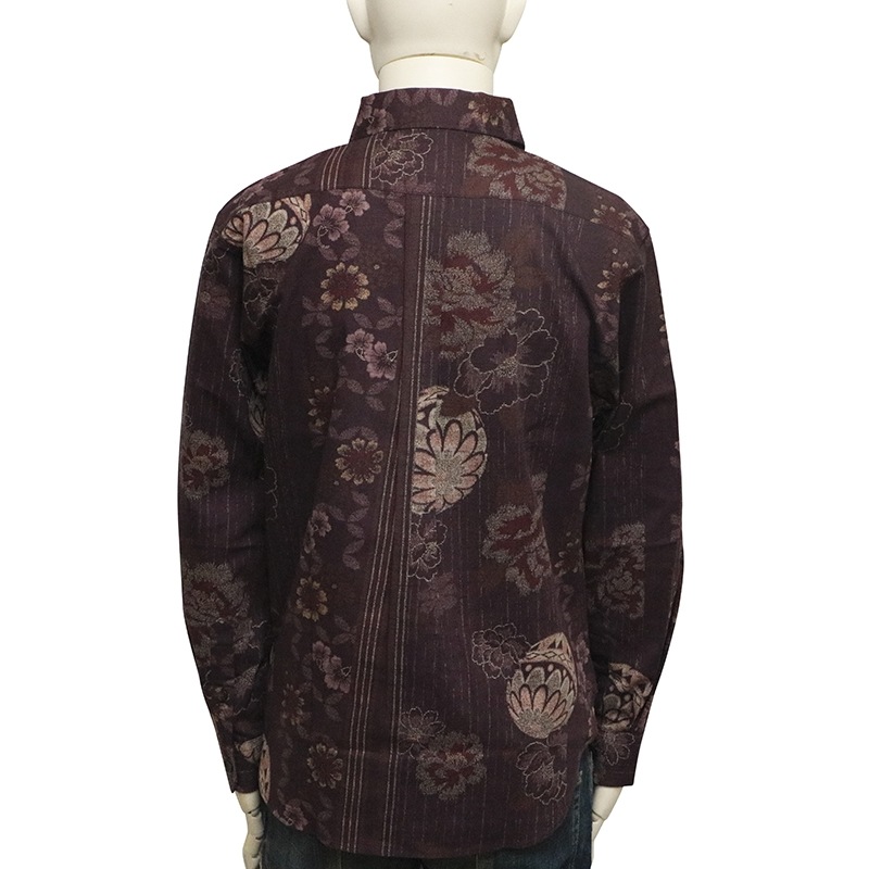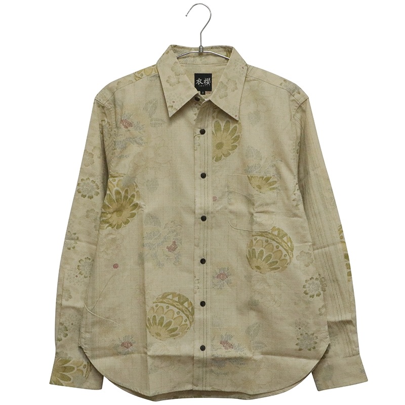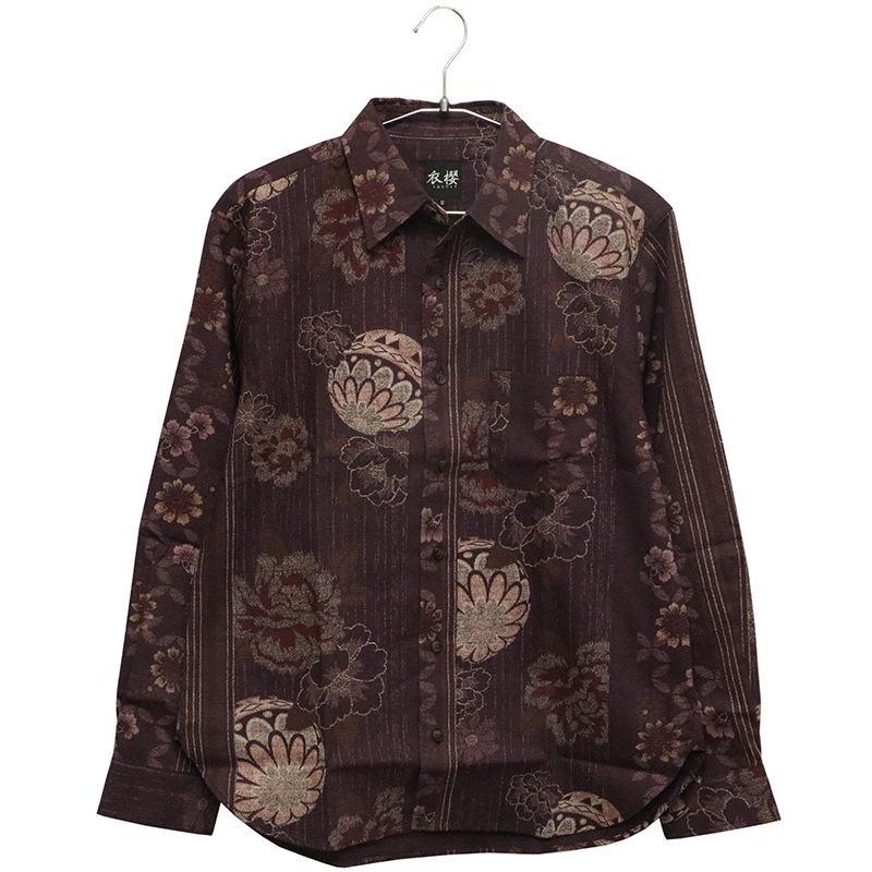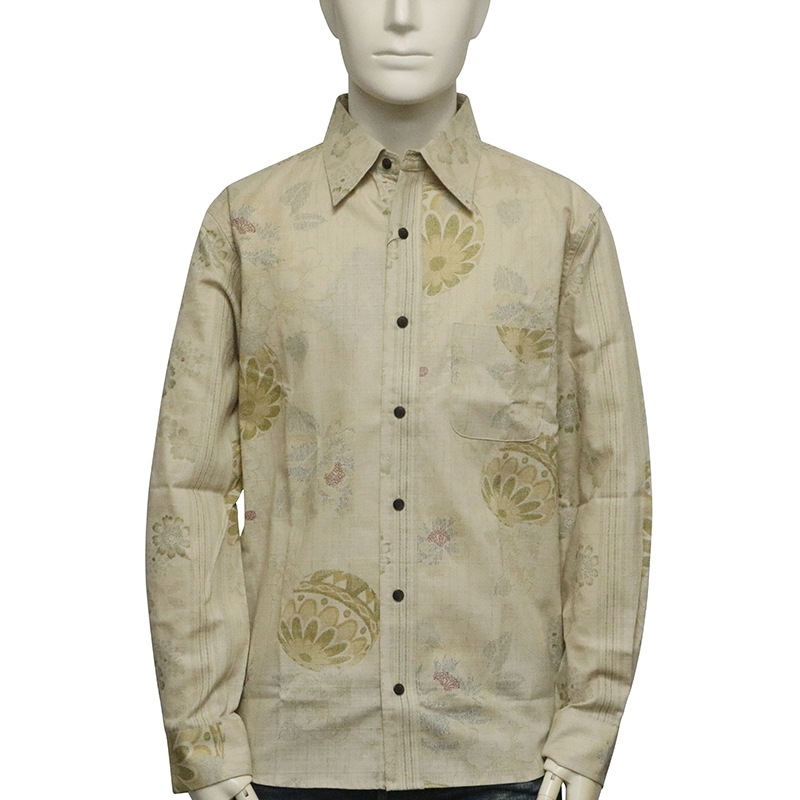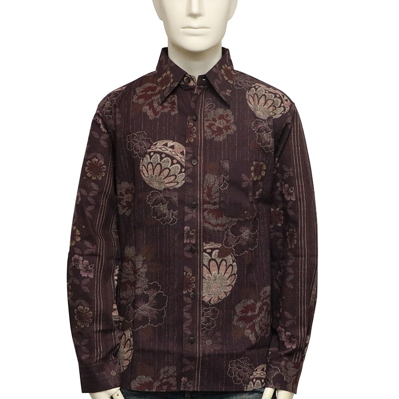 花手毬縞 柄 サザンクロス生地 和柄 長袖 レギュラーシャツ