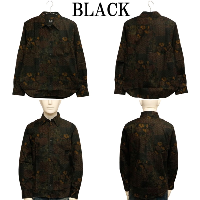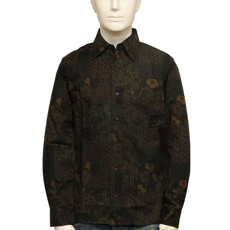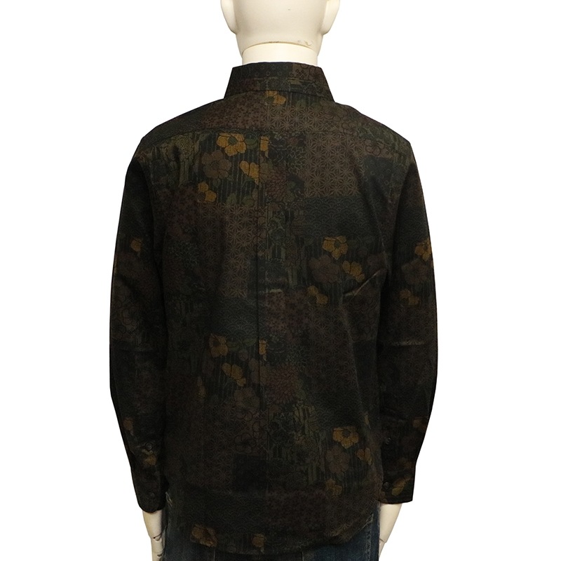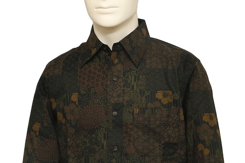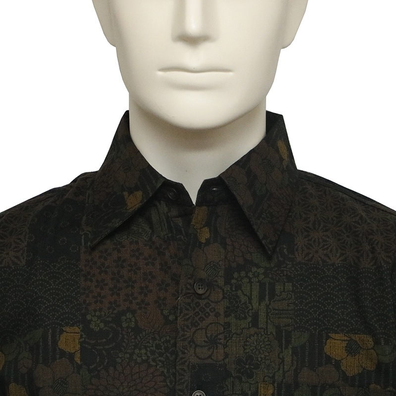 古裂パッチワークプリント サザンクロス生地 和柄 長袖 レギュラーシャツ