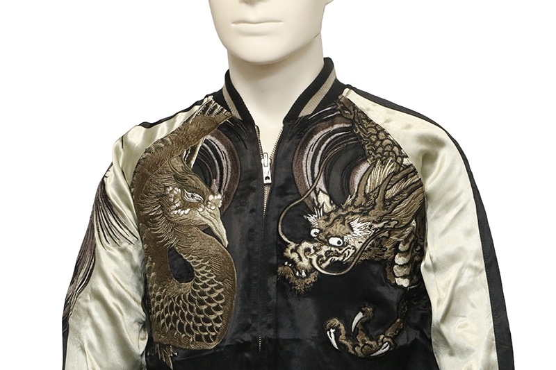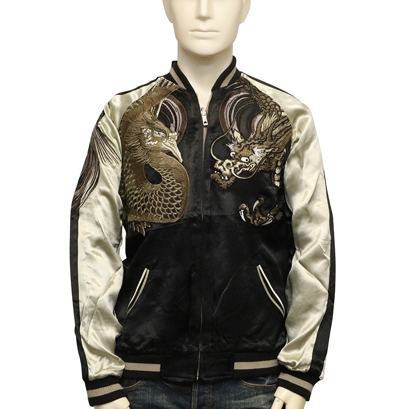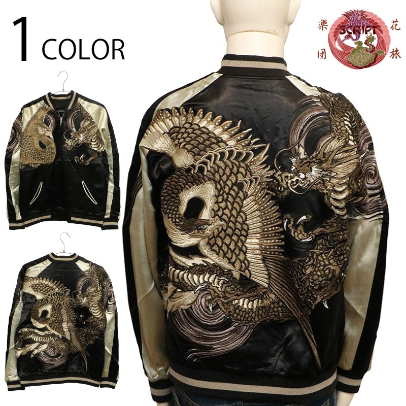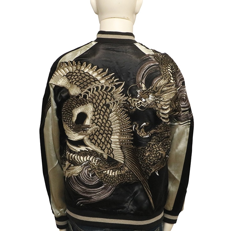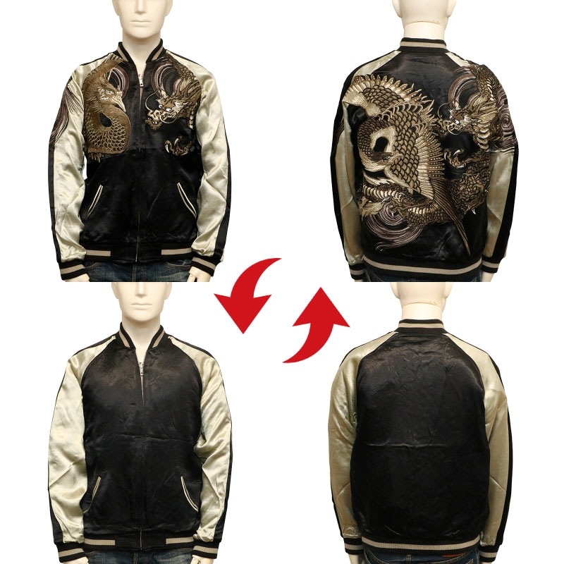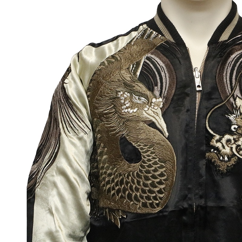 鳳龍図 柄 刺繍 和柄 リバ-シブル スカジャン 古都古都別注