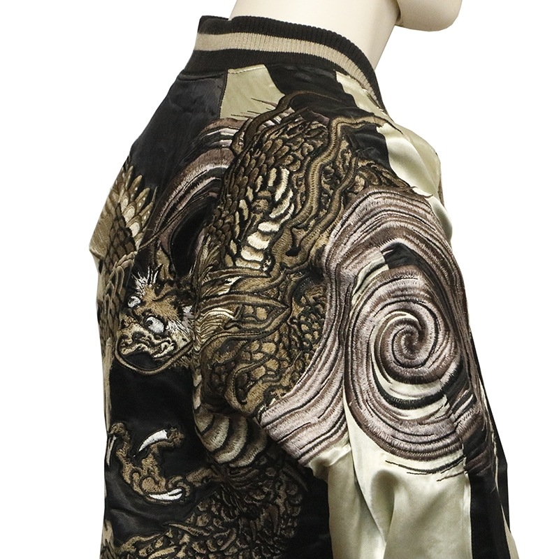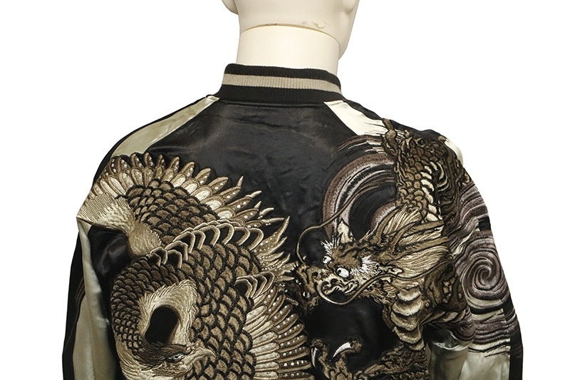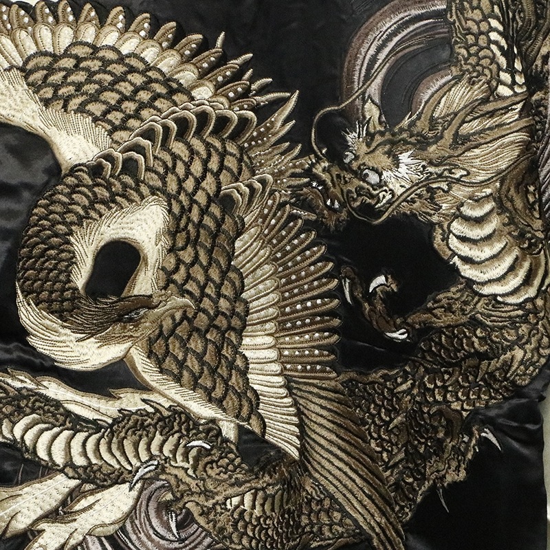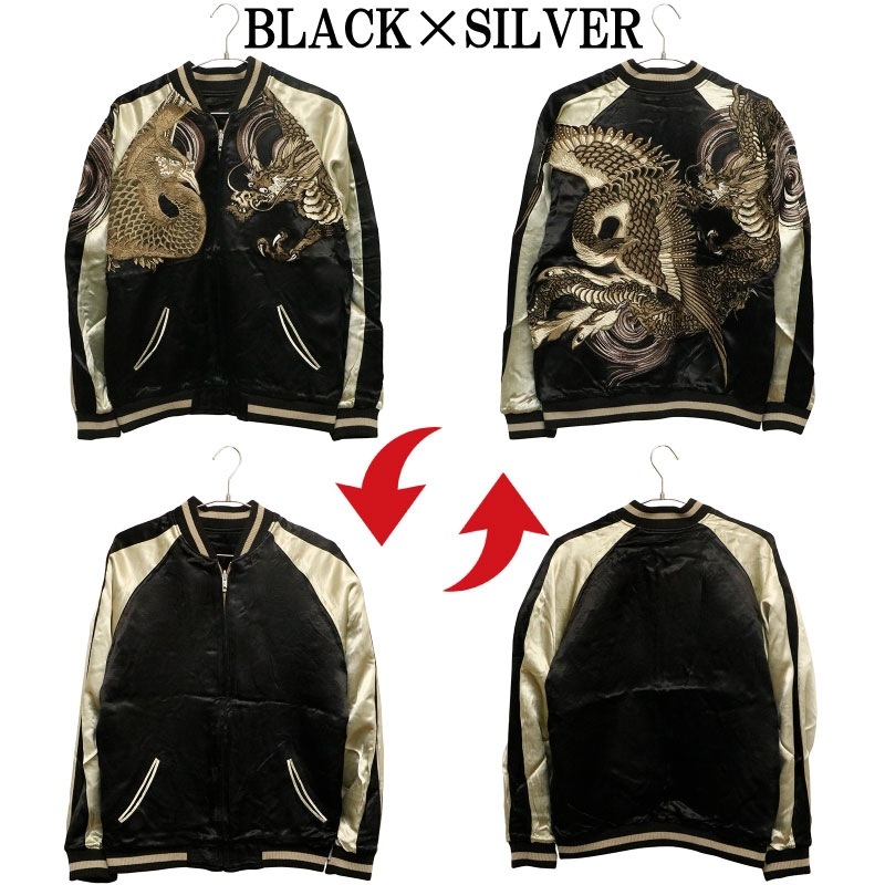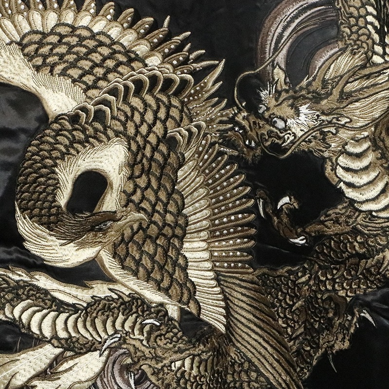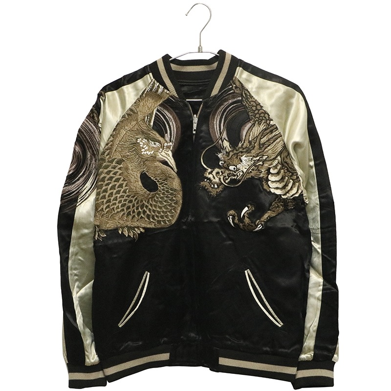 鳳龍図 柄 刺繍 和柄 リバ-シブル スカジャン 古都古都別注