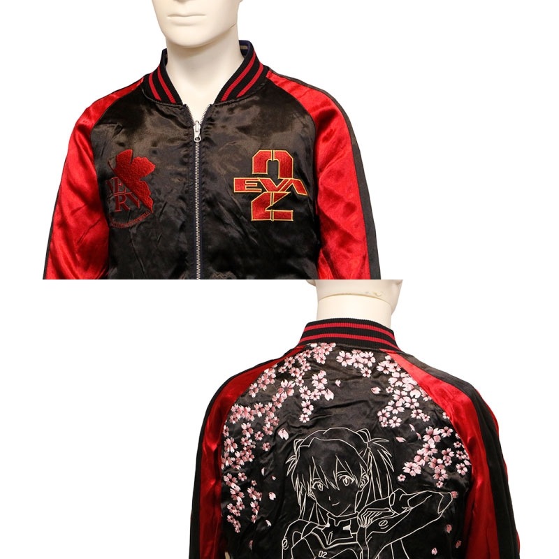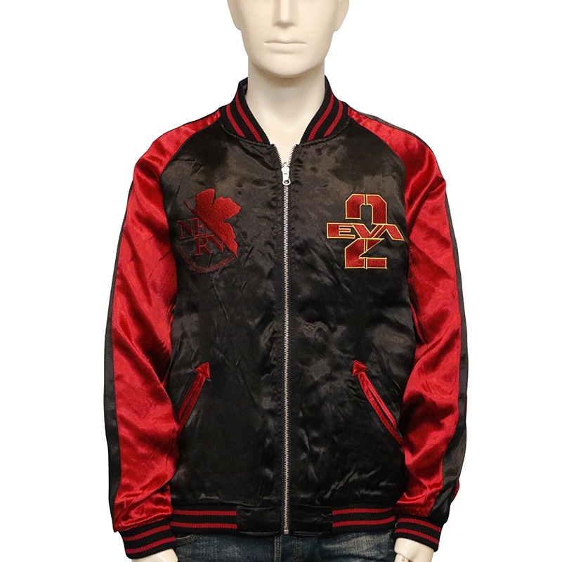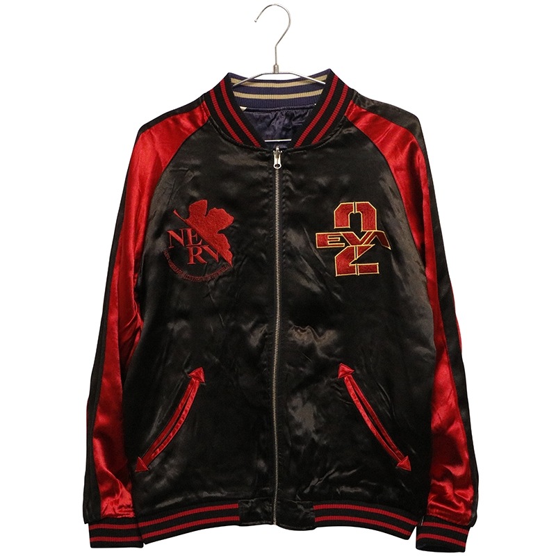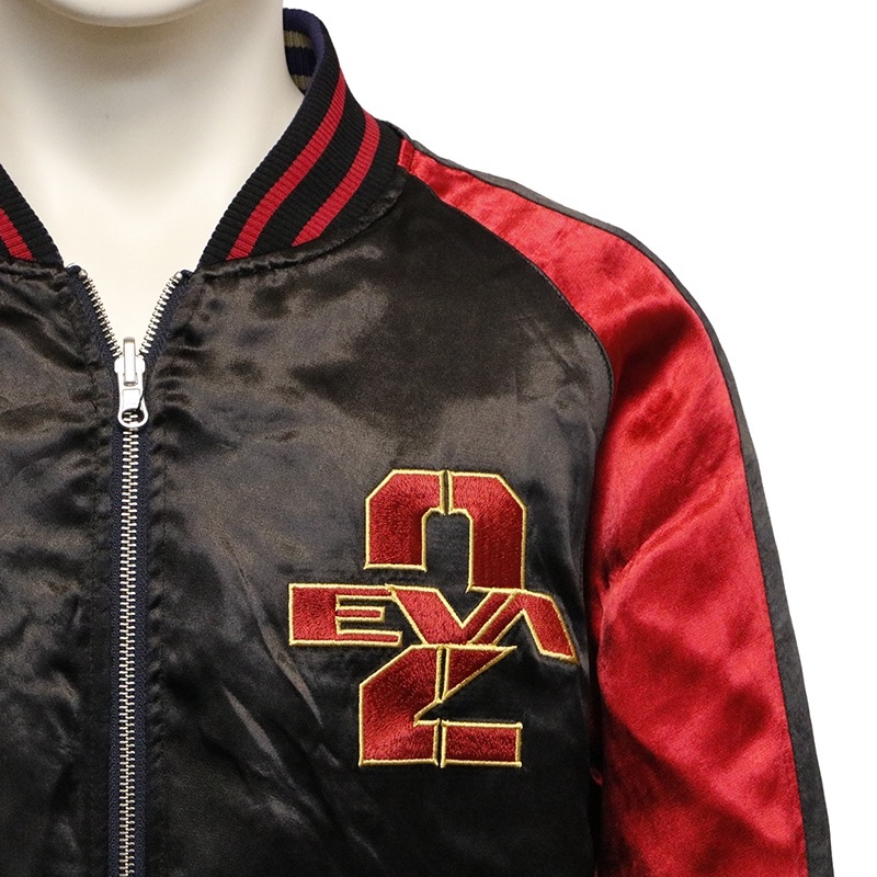 表面に、戦艦に降下するエヴァ弐号機を背中に総刺繍でデザイン。