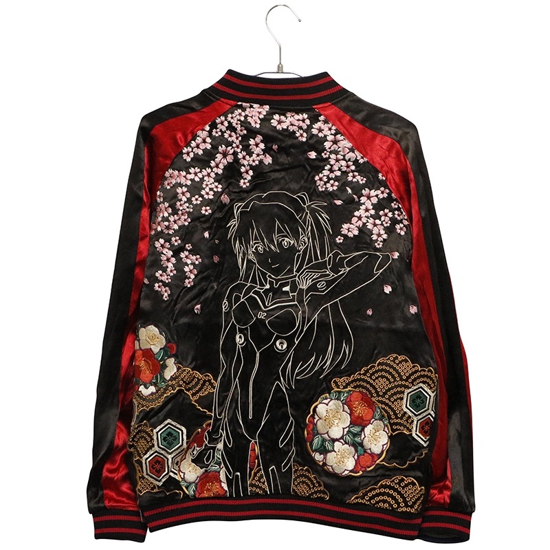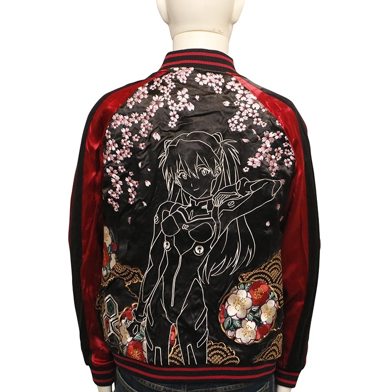リバーシブル面には、様々な花々にプラグスーツを着たアスカラングレーを刺繍。
