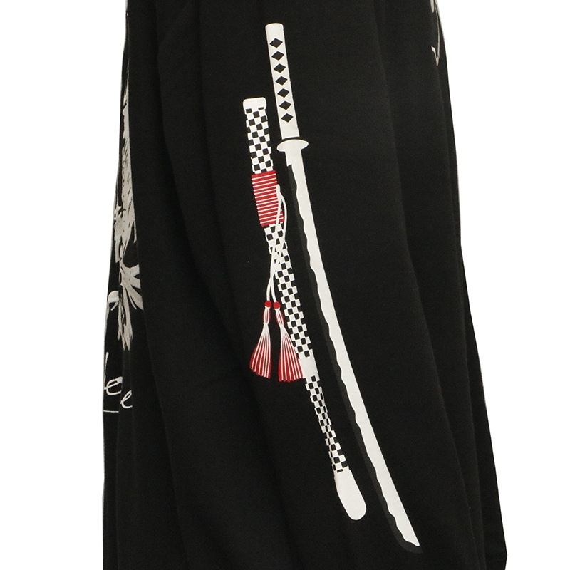 右袖には刀と鞘をプリントで配置。