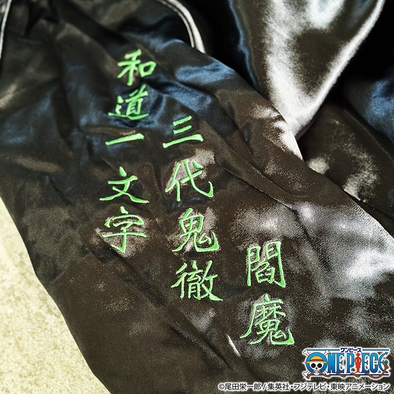 リバーシブル裏面胸部には太刀筋、袖には現在所有している名刀の名前を、ゾロが携えている右側に刺繍。