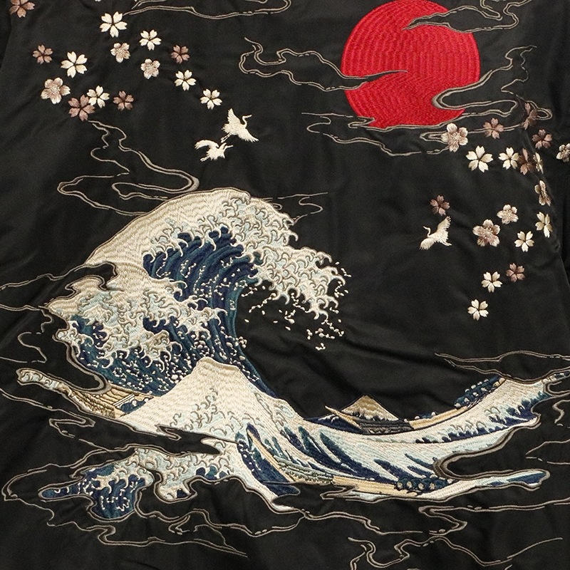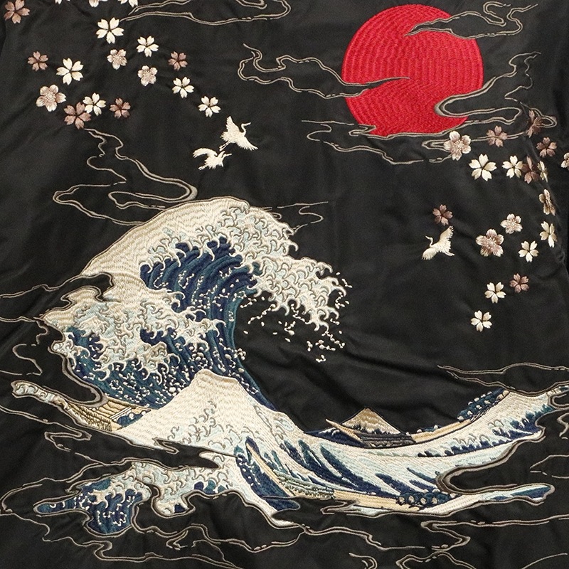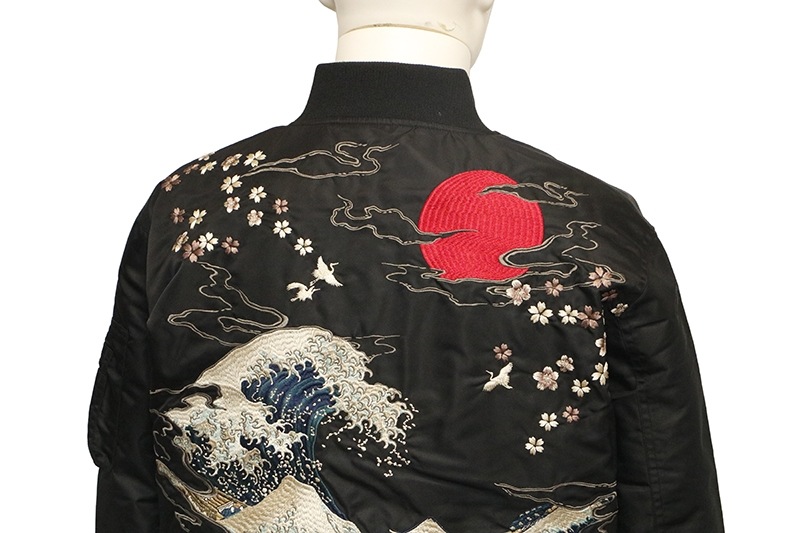 秋冬にピッタリのフライトジャケット「MA-1」に葛飾北斎の神奈川沖浪裏をモチーフにし刺繍で落とし込んだMA-1。