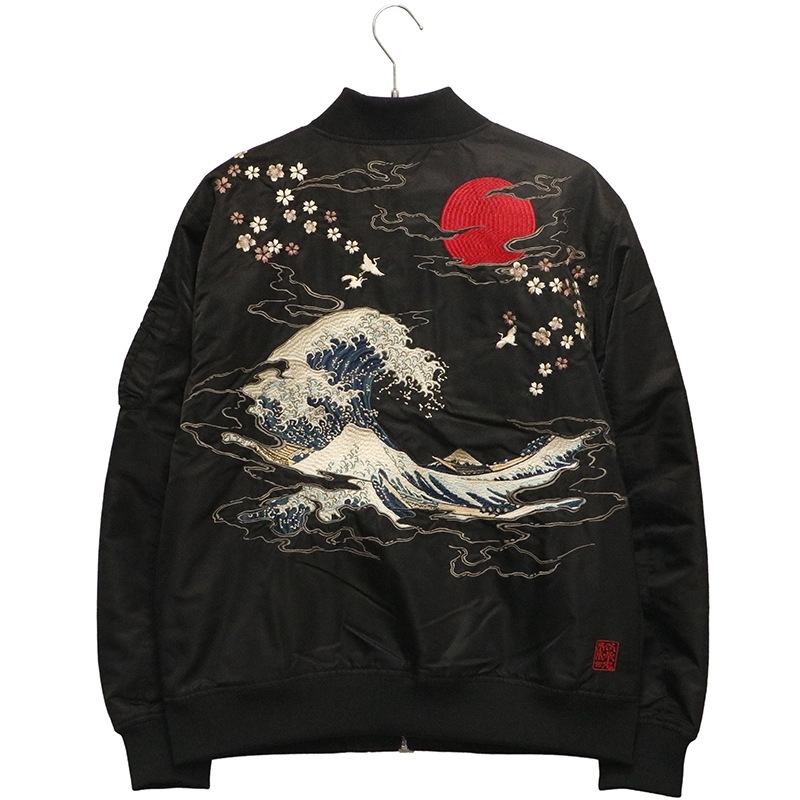 神奈川沖浪裏 柄 刺繍 和柄 MA-1 ジャケット