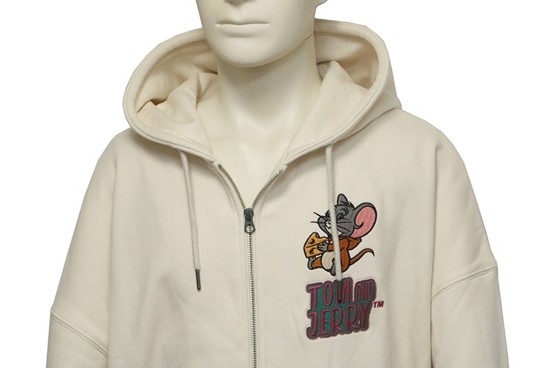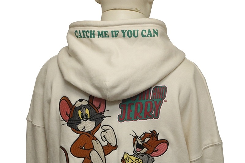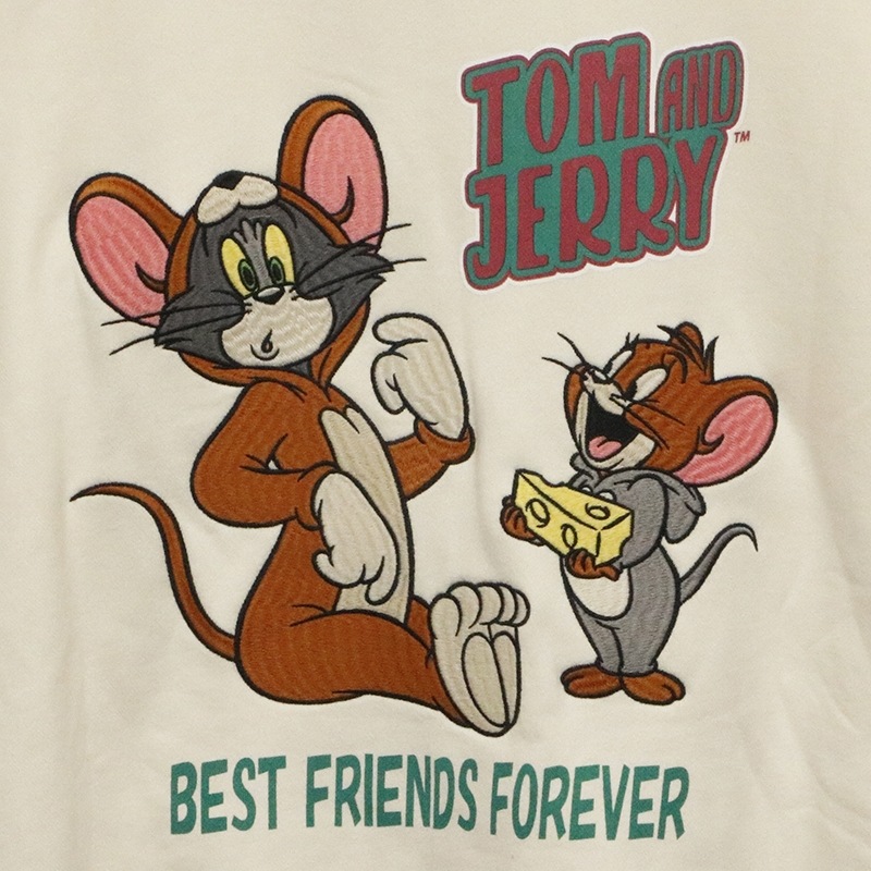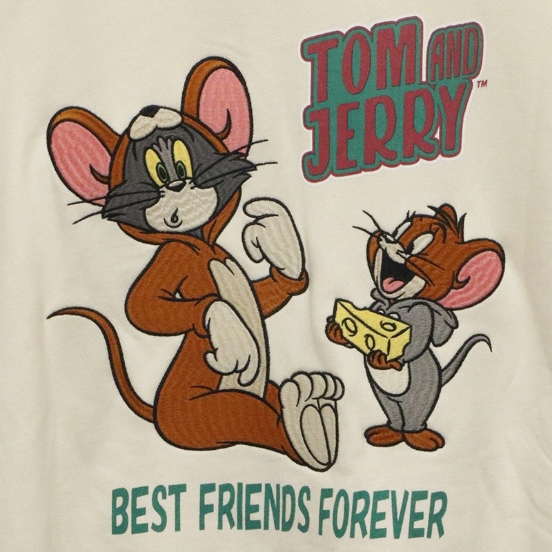 トムがジェリーの着ぐるみをジェリーがトムの着ぐるみを着た姿を刺繍で落とし込んだパーカー。