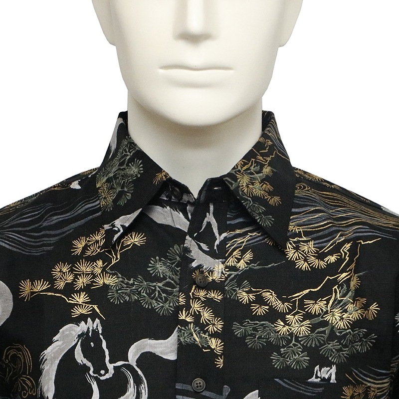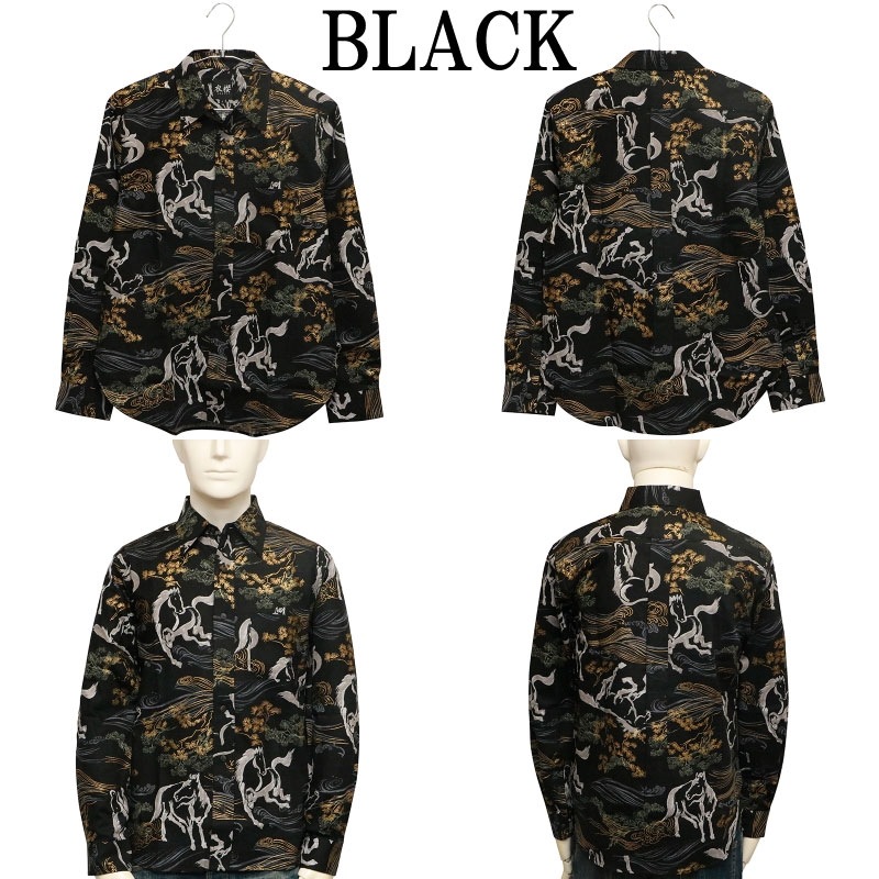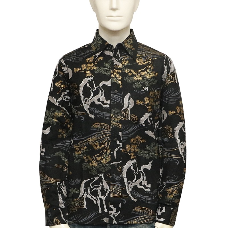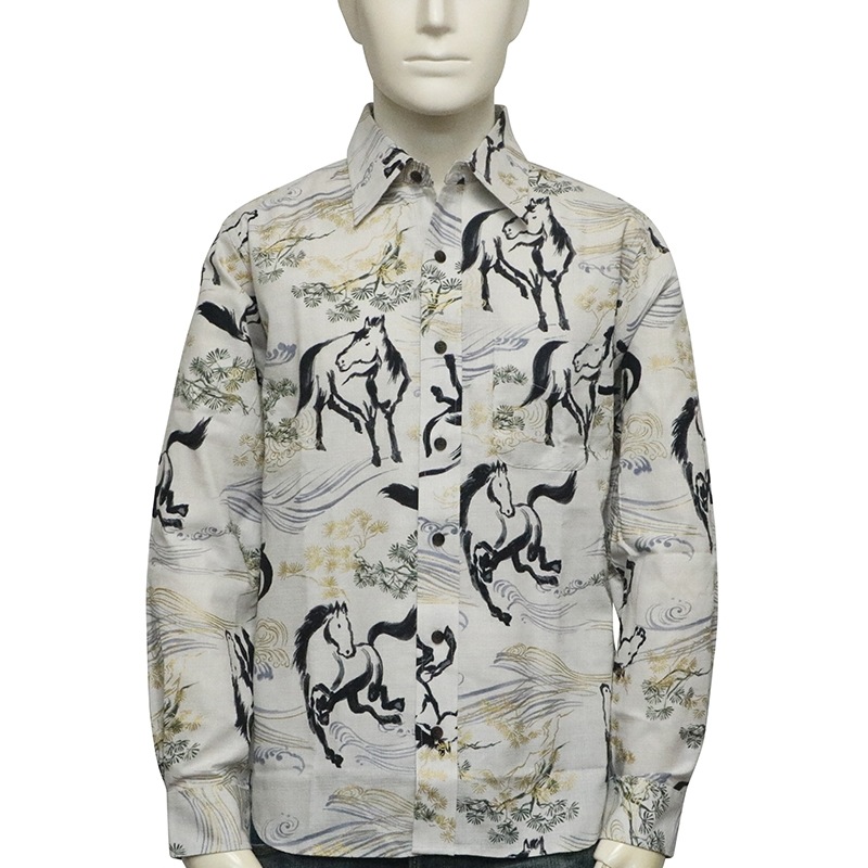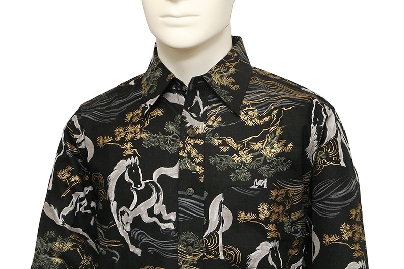 金彩墨絵馬 柄 サザンクロス生地 和柄 長袖 レギュラーシャツ