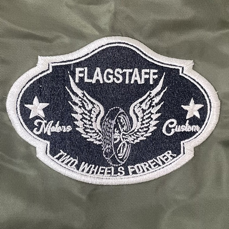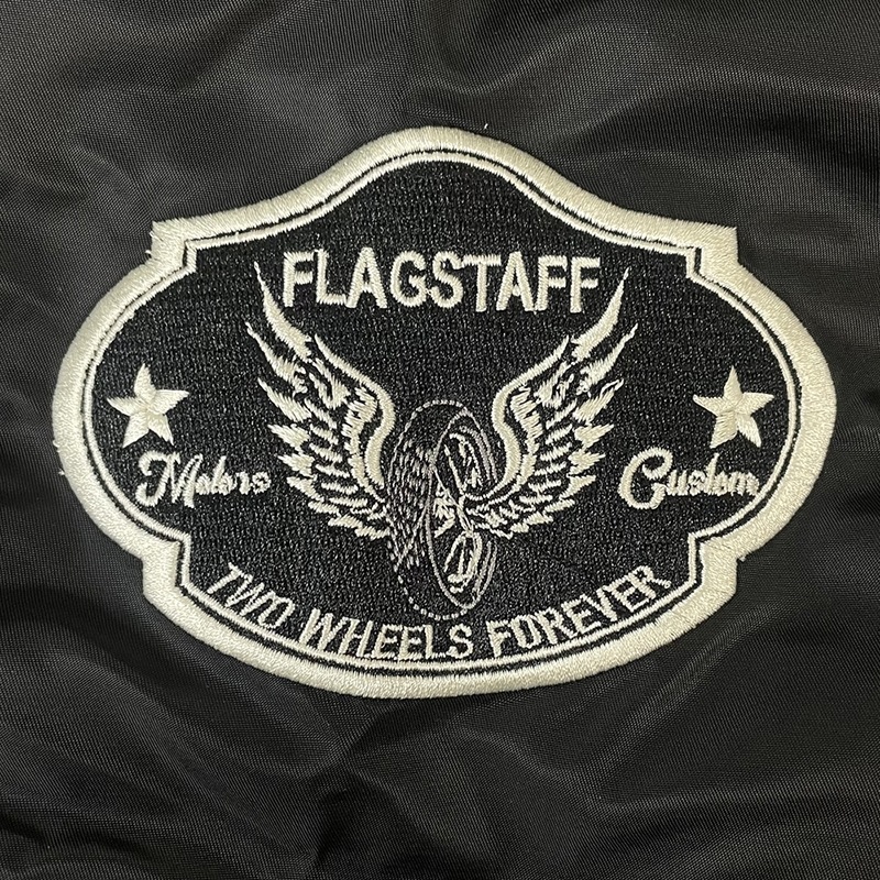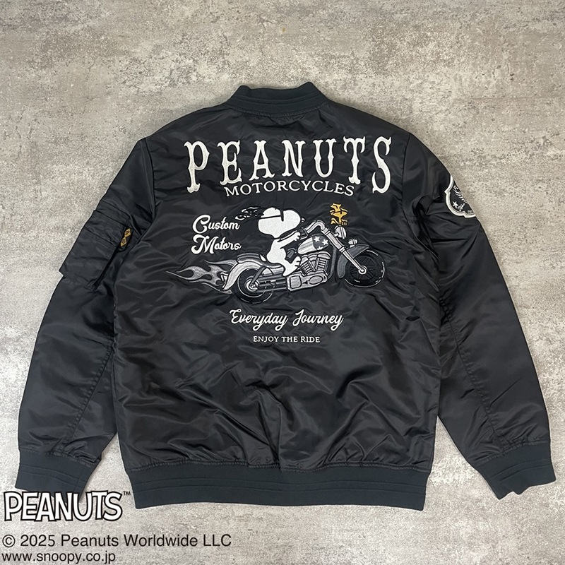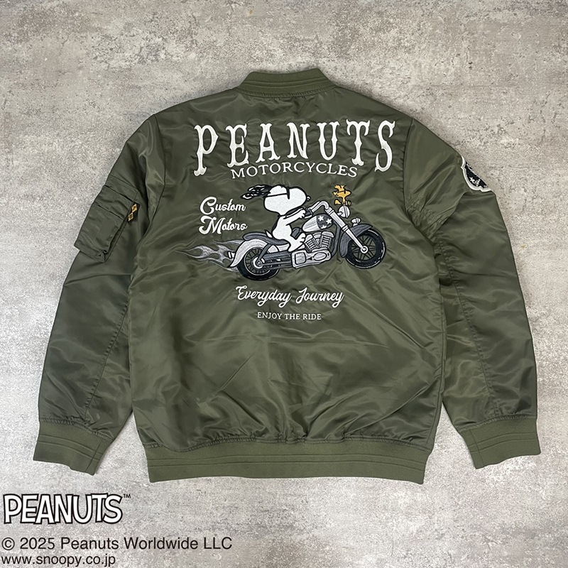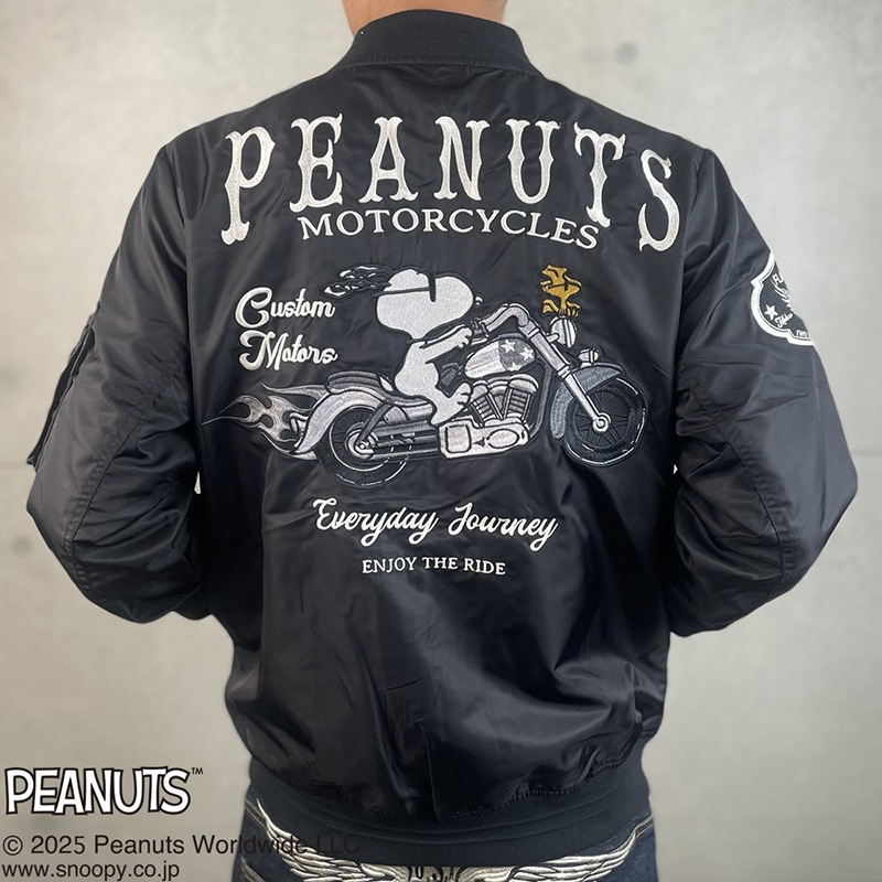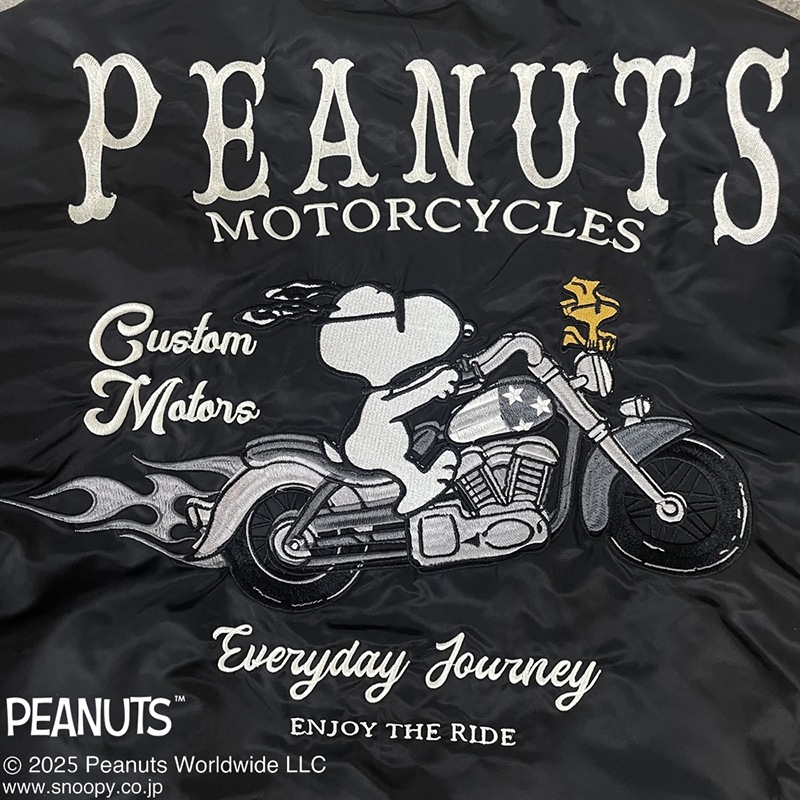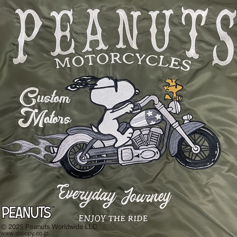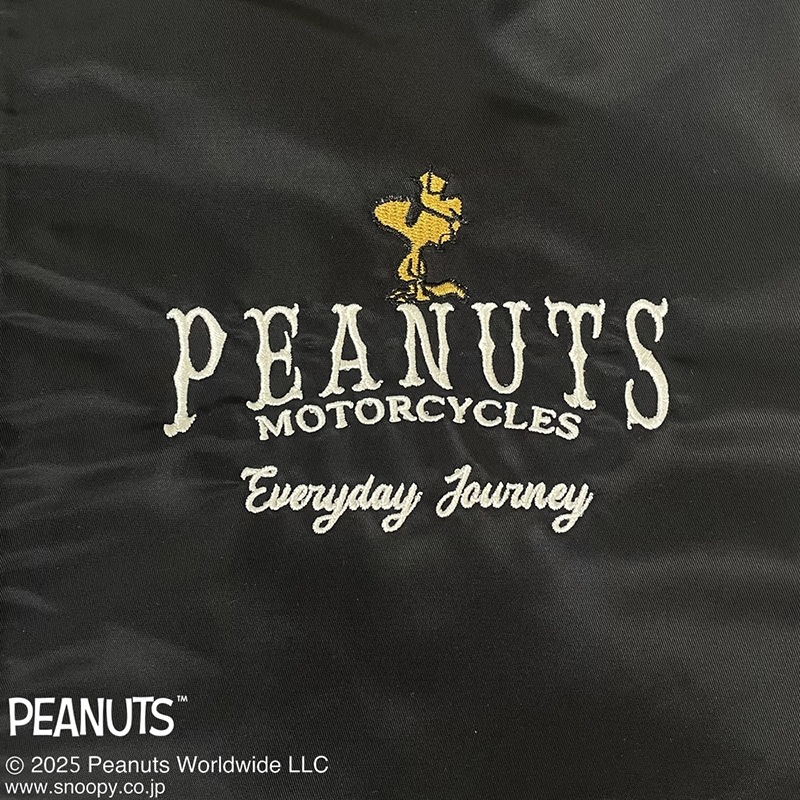 アメリカンバイクに乗るSNOOPYとWOODSTOCKの刺繍が愛くるしい♪