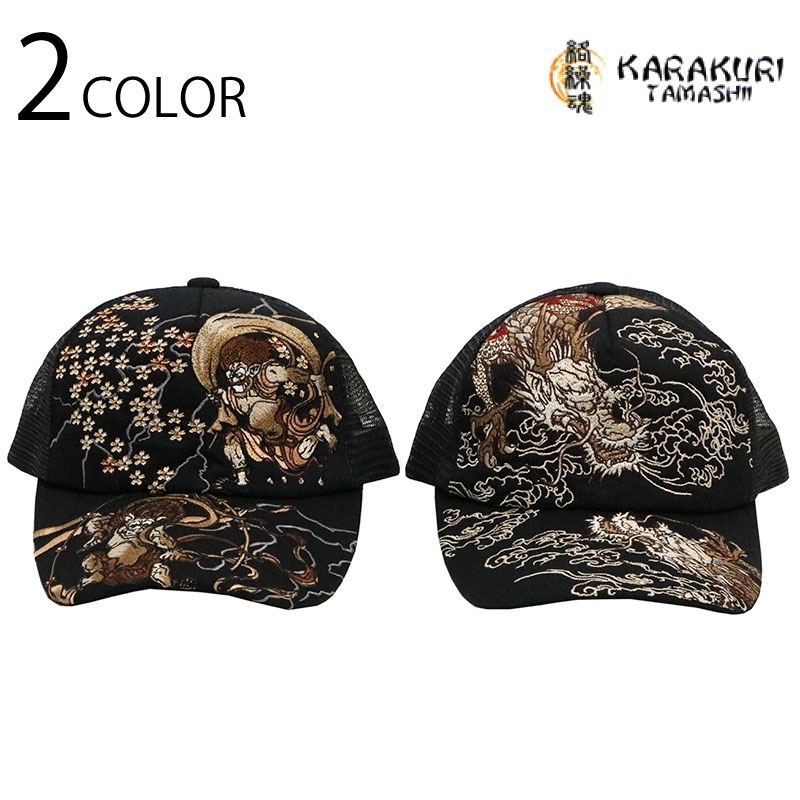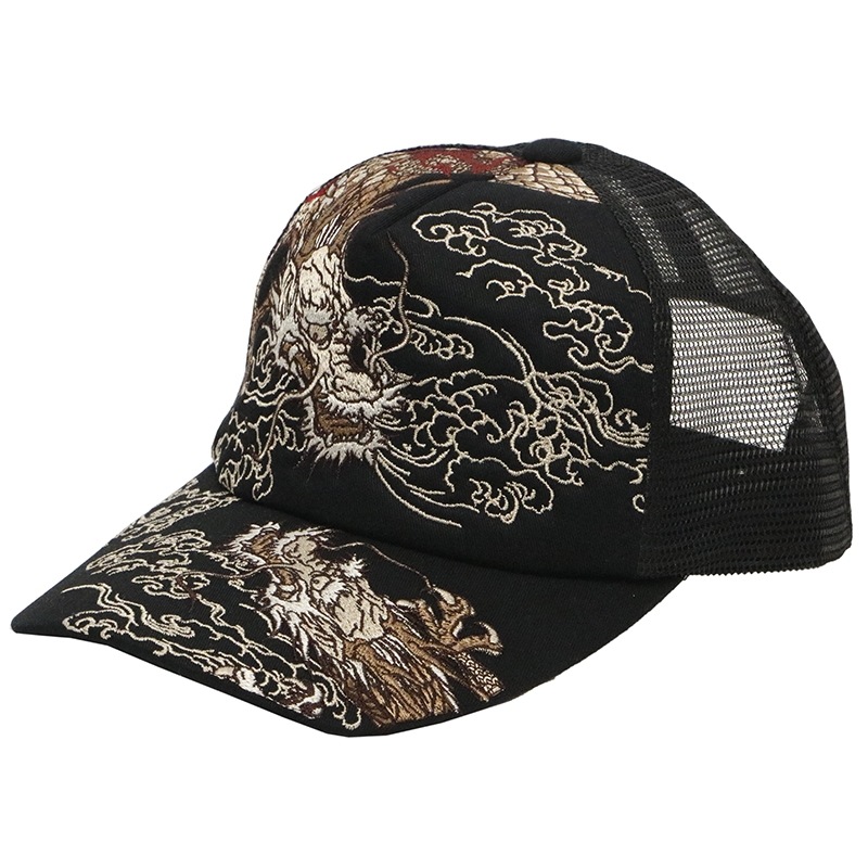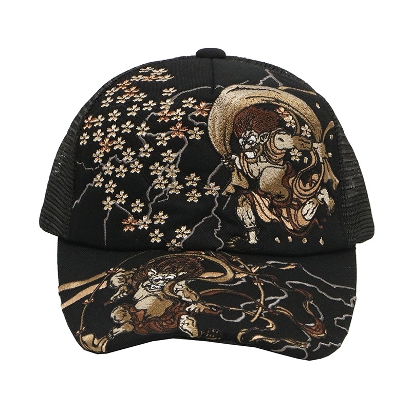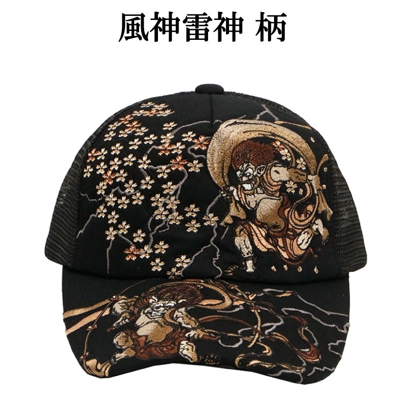 龍 or 風神雷神 柄 刺繍 和柄 メッシュ キャップ