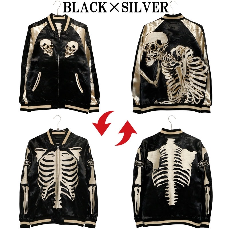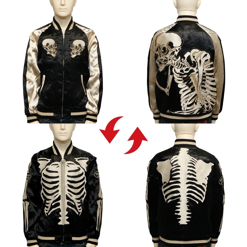 がしゃ髑髏 × ボーン 柄 刺繍 リバ-シブル スカジャン