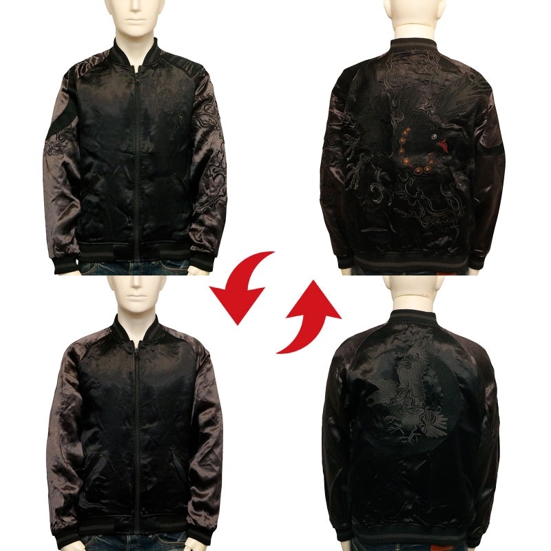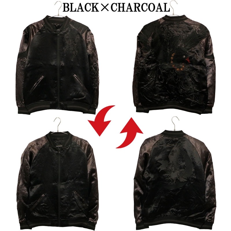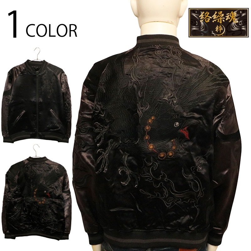 八咫烏 邂逅 柄 刺繍 和柄 リバ-シブル スカジャン