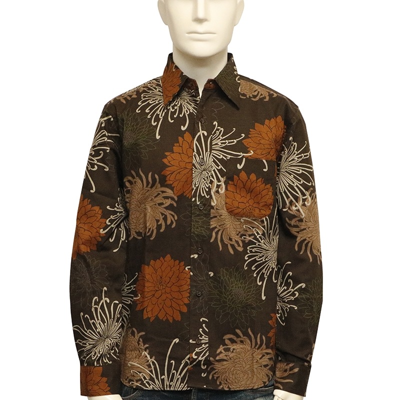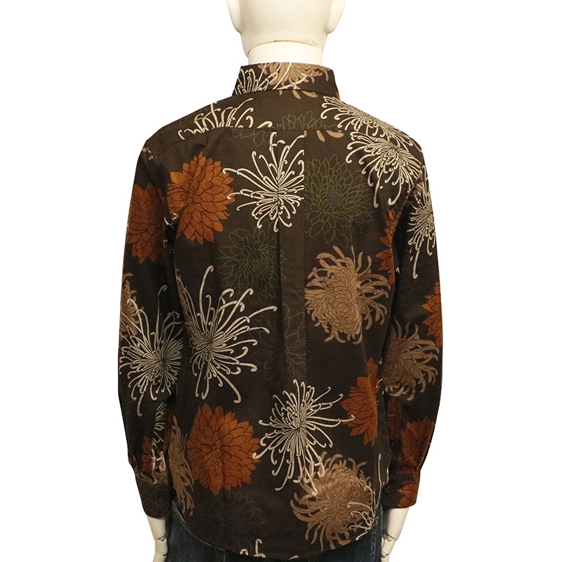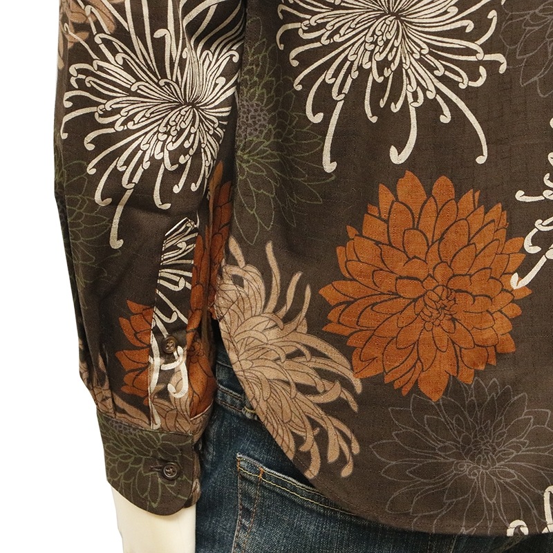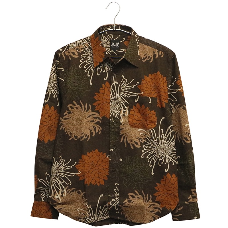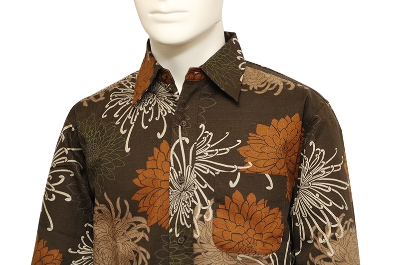 総菊尽くし 柄 サザンクロス 素材 和柄 長袖 レギュラーシャツ 別注色