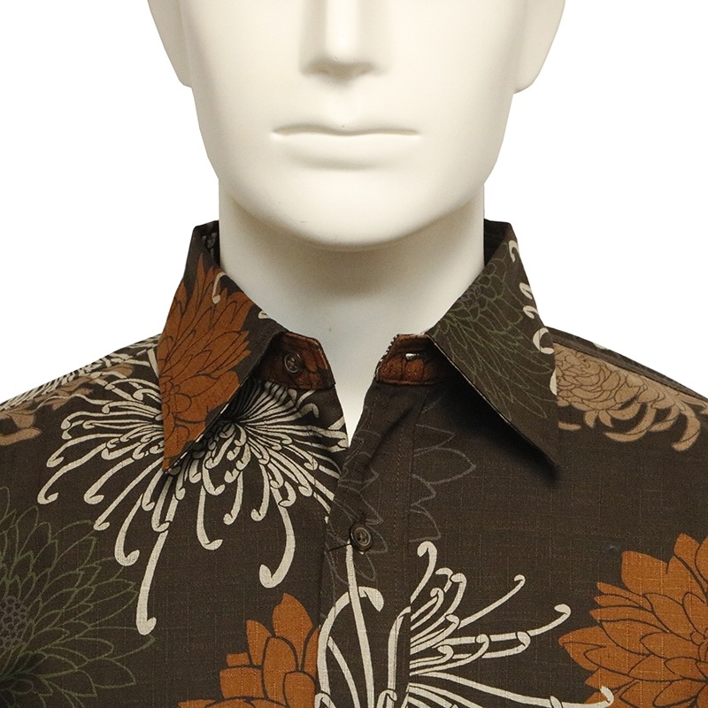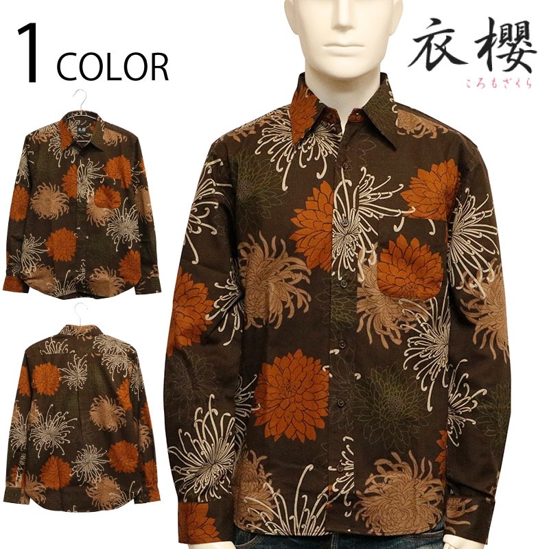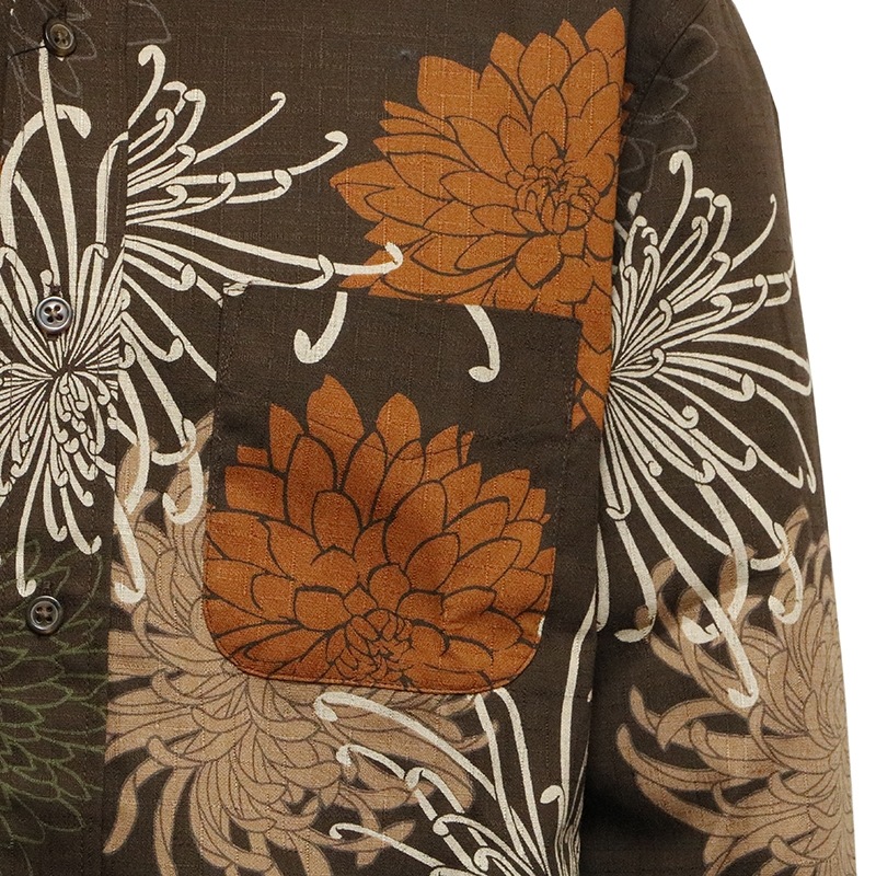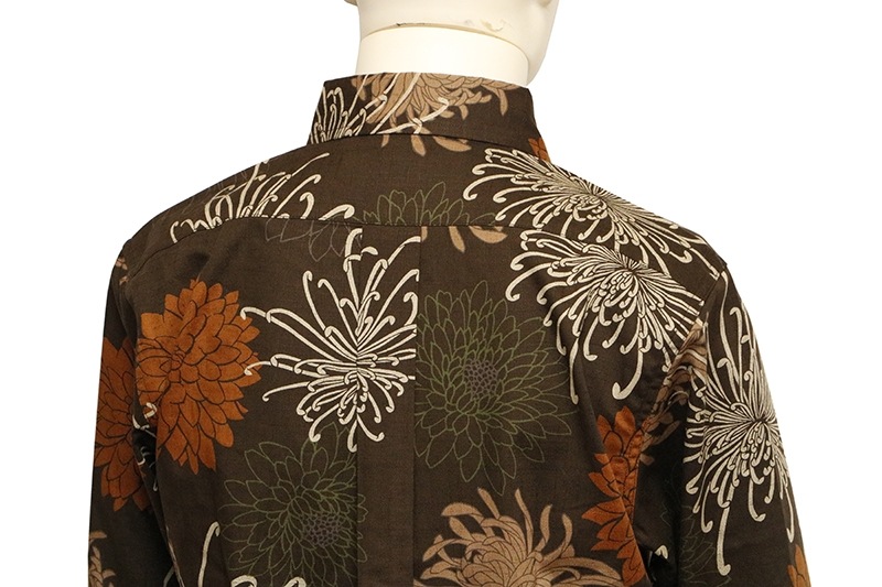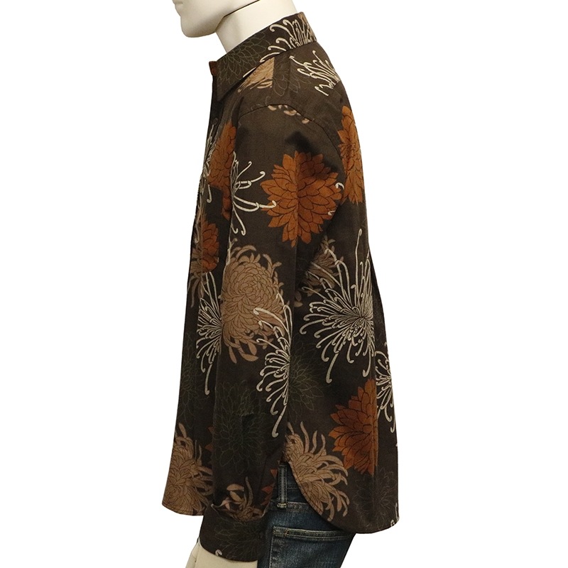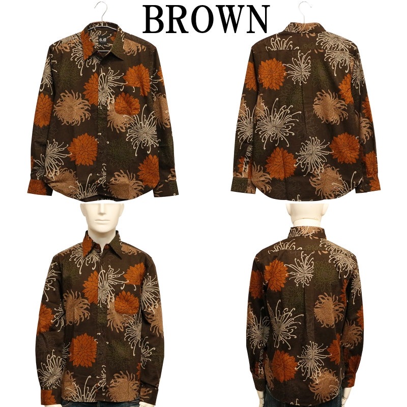 総菊尽くし 柄 サザンクロス 素材 和柄 長袖 レギュラーシャツ 別注色