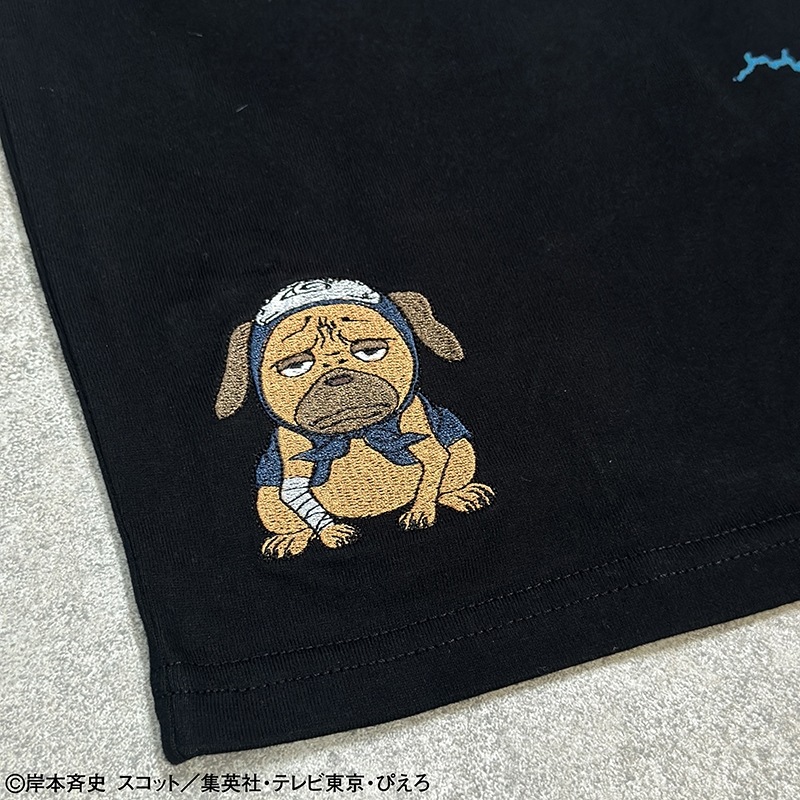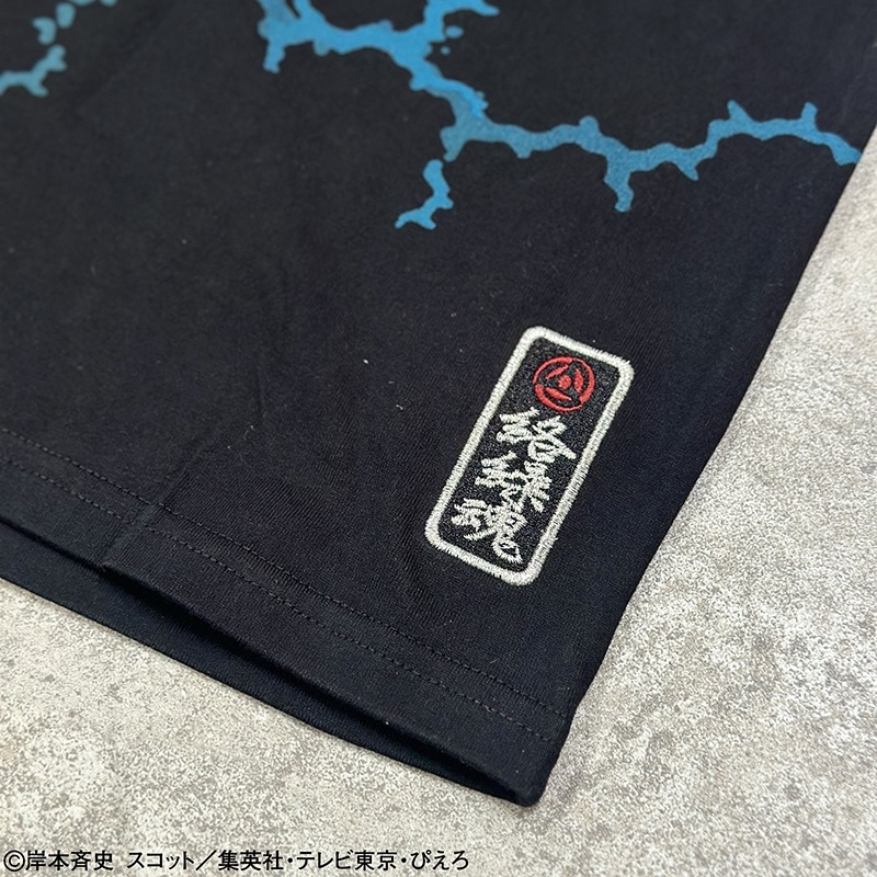雷切をイメージした背景に、フロント裾部にはパックンを刺繍した