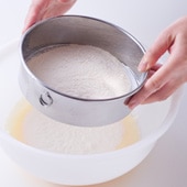 グラニュー糖(上白糖:普通の砂糖)は塊を取り除き、サラサラのものを。 ![]() ![]() 薄力粉はていねいにふるいましょう。