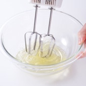 ハンドミキサーを使おう。 ![]() ![]() 卵白と卵黄をきちんと分ける。