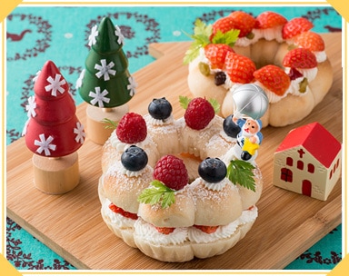 中央くらいで上下にカットし、生クリームとスライスしたフルーツをサンドする。また、上部には粉糖をふり、お好みのフルーツをトッピングする。 【ポイント】 |