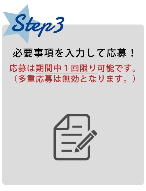 ・応募は期間中一回限り可能です。(注文番号が異なる場合でも、多重応募は無効となります。)