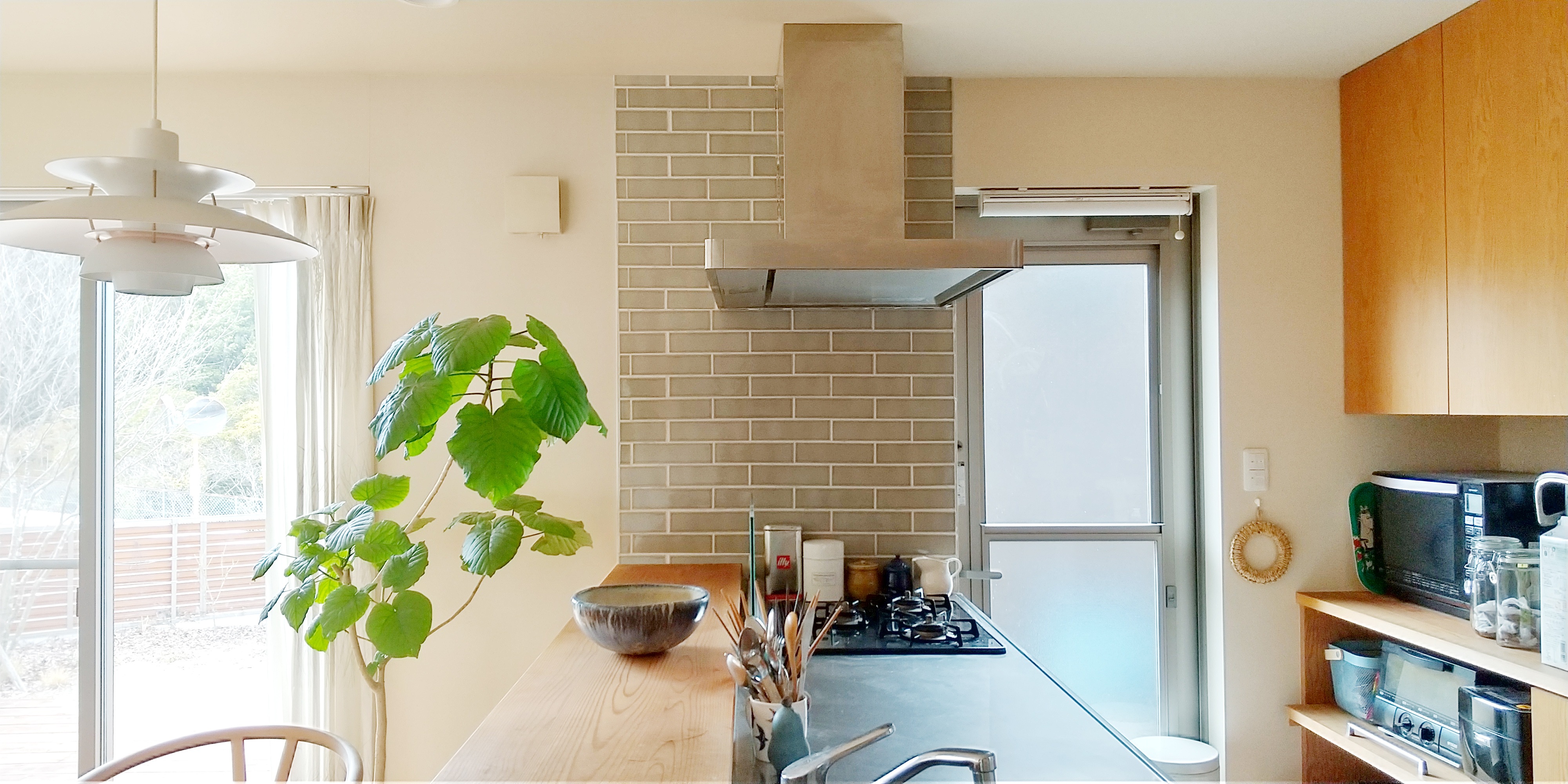 グレー03番と目地はアイボリーで優しい雰囲気に。