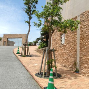 リゾート風という言葉がぴったりの、自然の風合いが石を価格を抑えたセメント系で実現しています。
