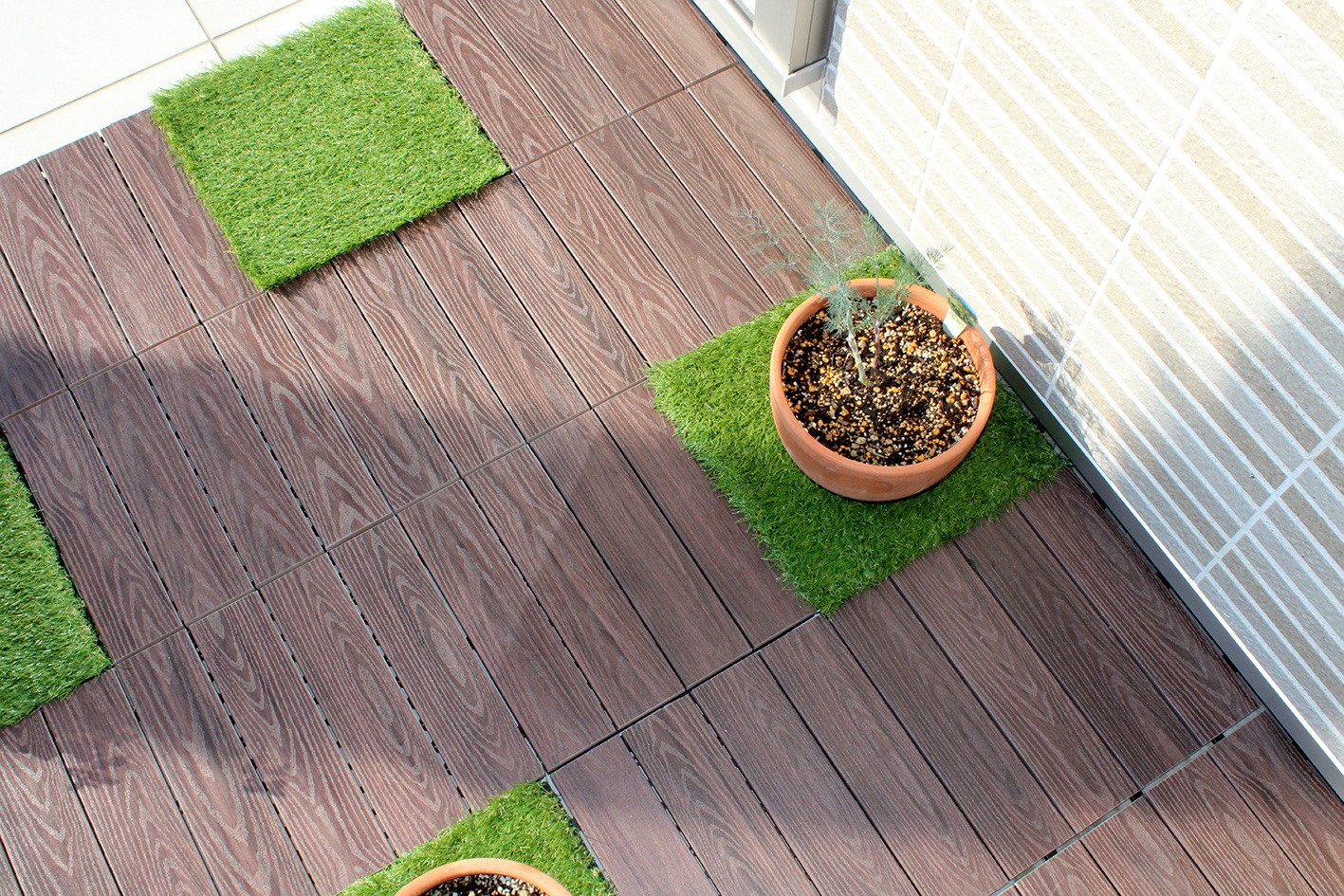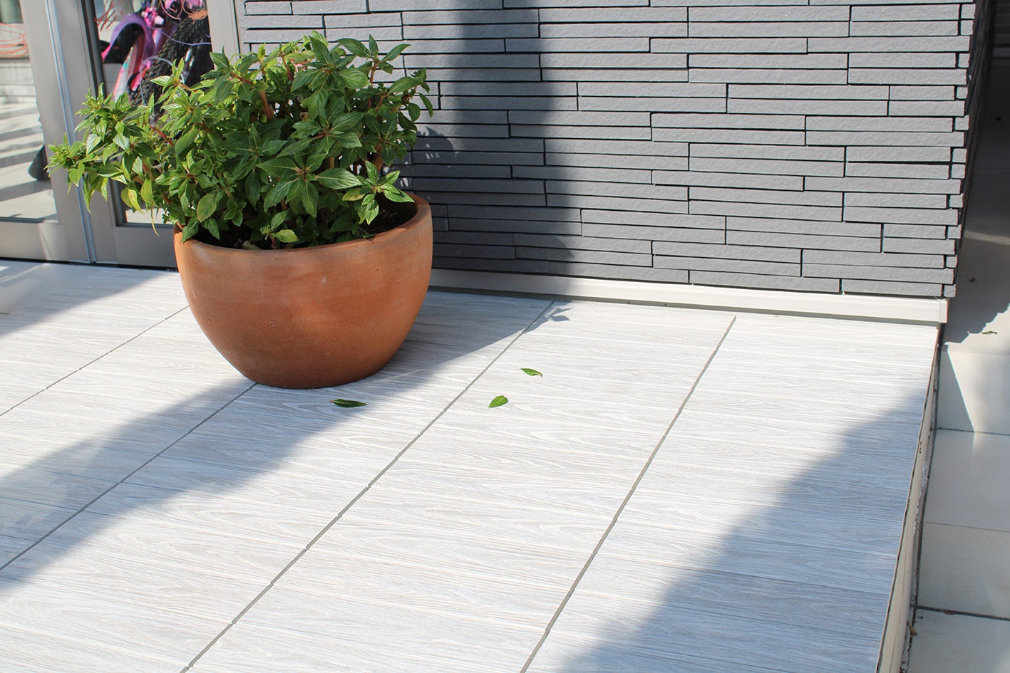 お部屋が増えたような雰囲気になるジョイントデッキ。さらっとした足元でベランダ活用がぐんと広がります。