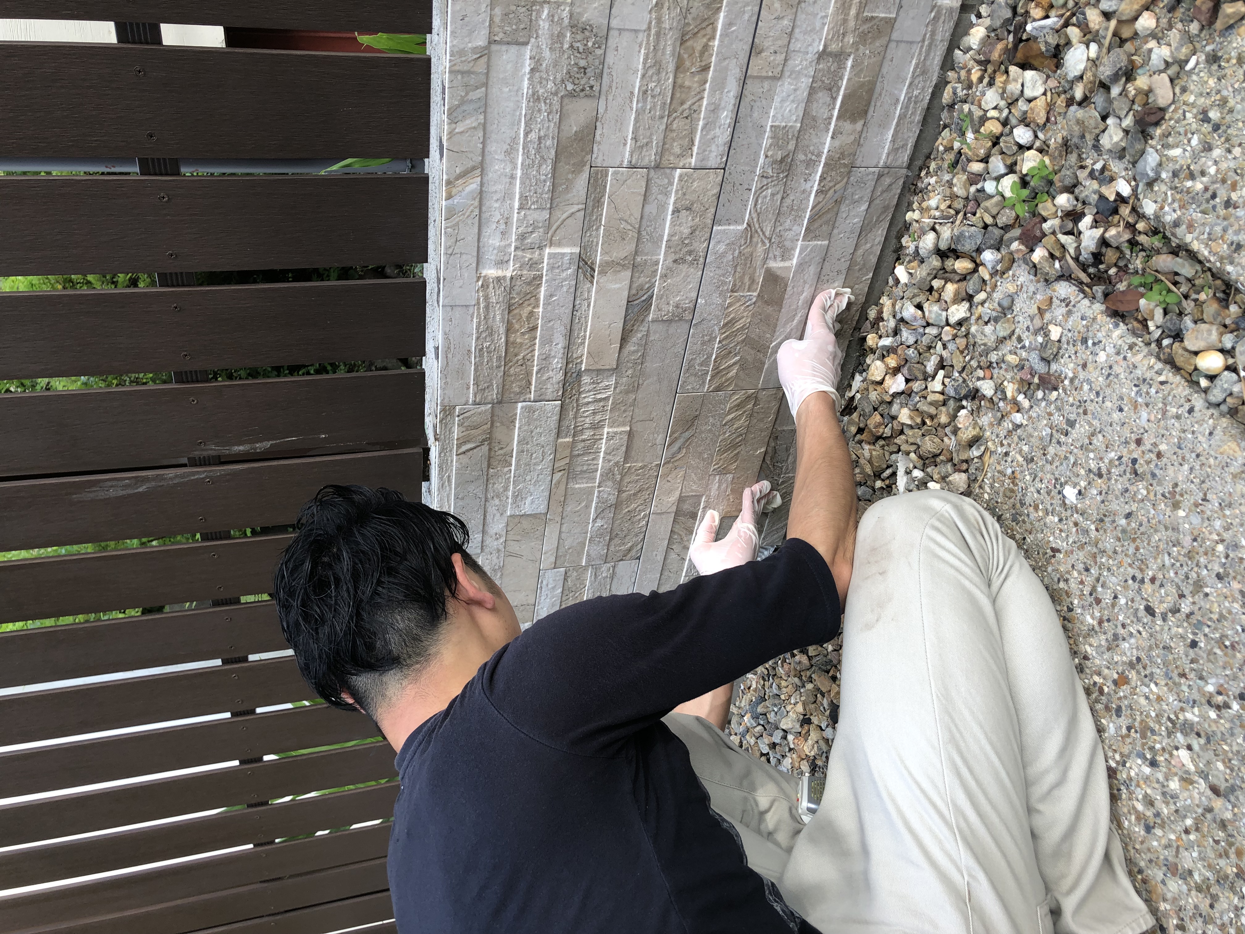 切り出し石を積み上げたような仕上がりになるコアスタックを施工して頂きました。