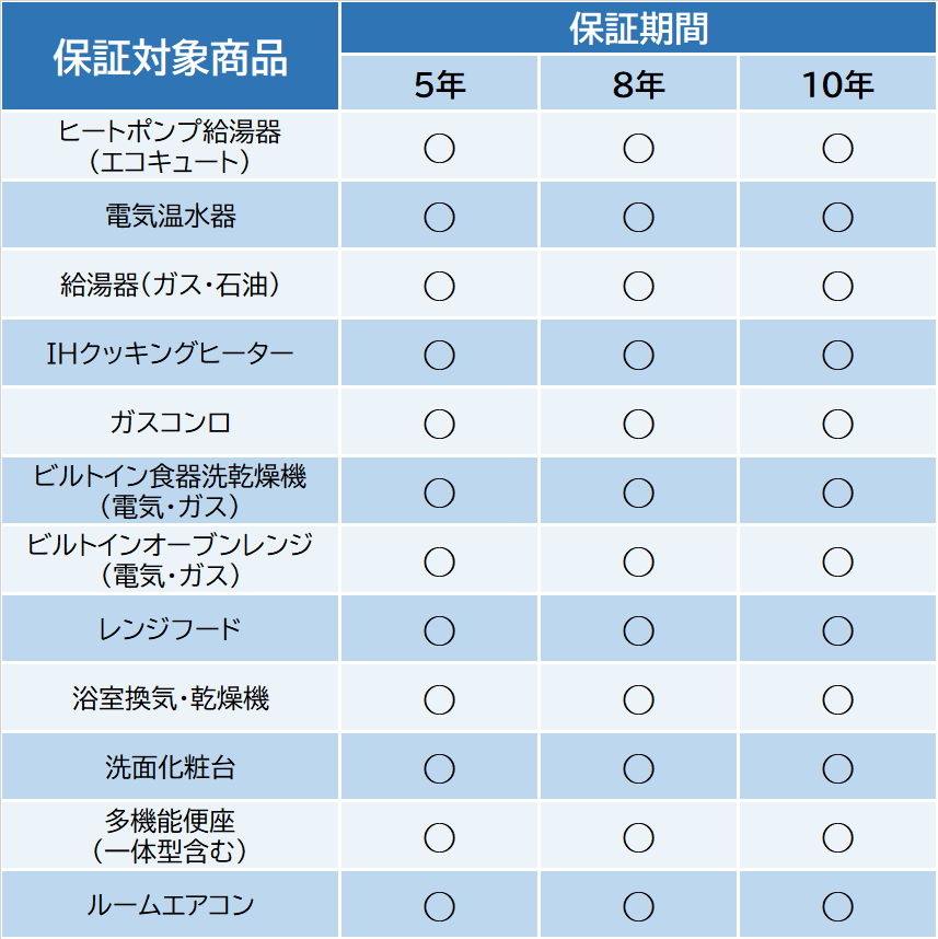 詳しくは住宅設備機器延長保証サービス規程をご確認ください。