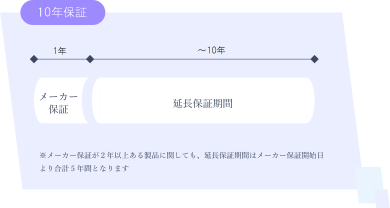 延長保証とは、メーカー保証が終了した後の一定期間、メーカー保証とほぼ同等の内容を継続するサービスです。