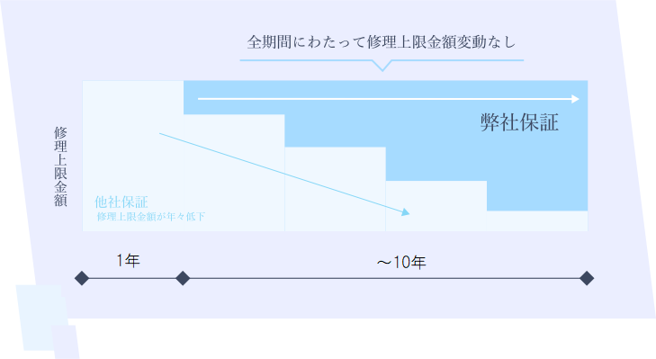 修理上限金額は商品購入金額を上限として保証期間中100%のままです