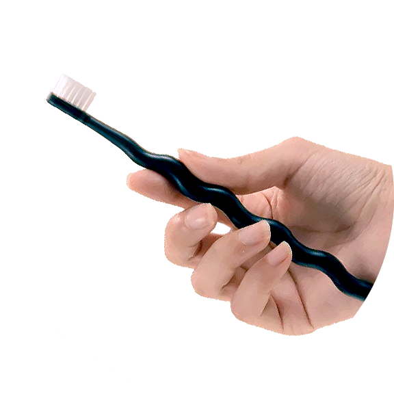 ゼブラシを握るときは、ウェーブ型の柄に指を沿わせることで安定して持つことができます。