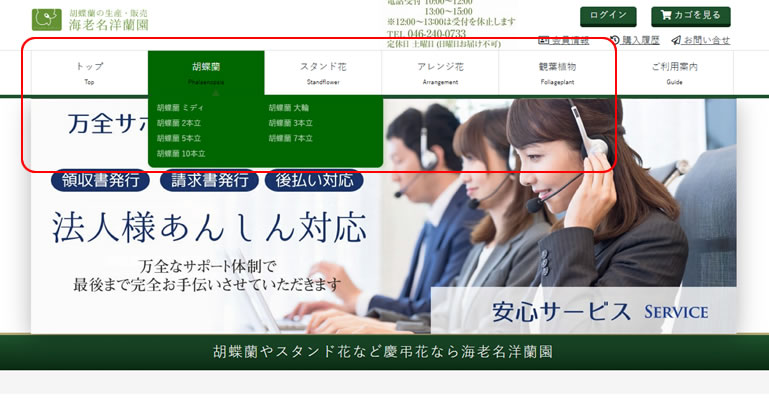 - 1-1.オンラインショップトップにあるメニューから商品カテゴリを選択する