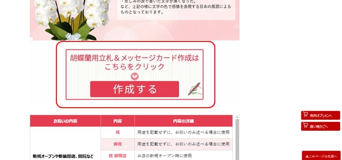 ※胡蝶蘭の場合、特に「品種の違いについて」「胡蝶蘭の立札とメッセージカードの書き方」