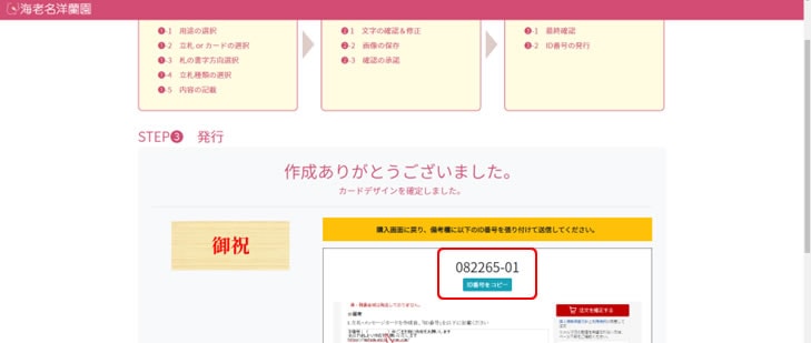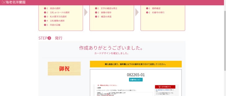 立札・メッセージカードを作成後の「ID番号」、または「ご内容」を記載ください