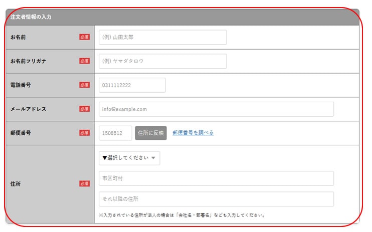 ※新規会員様及び会員様はご登録した情報が表示されます - 2-3. ご注文手続き画面にて「注文者情報の入力」を入力する