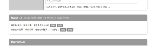 ※姓と名でそれぞれ分けてご入力頂ければ会社名などでご注文可能です - 「お届け先の入力」欄にてにて、