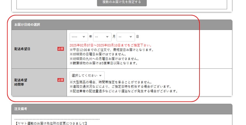 - 2-6.「注文備考」欄のご案内を必ずご一読ください