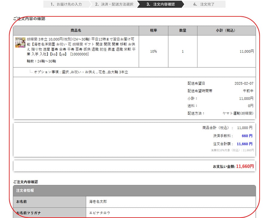 3-1.購入商品やご入力いただいた内容にお間違いが無いか確認する