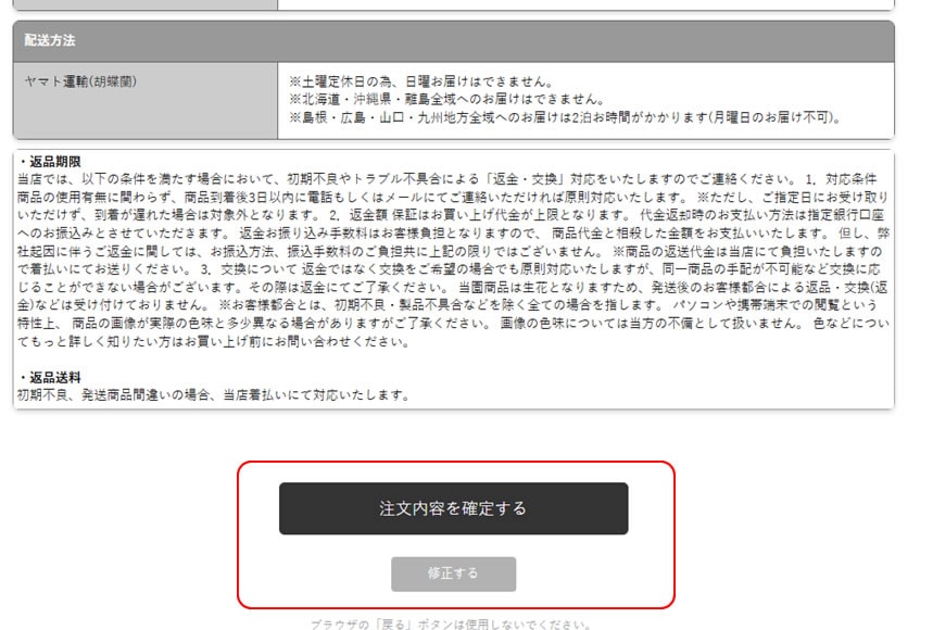 - 3-2.購入内容に間違いなければ「注文内容を確定する」をクリックしてご注文を確定する