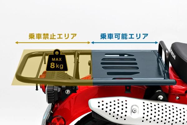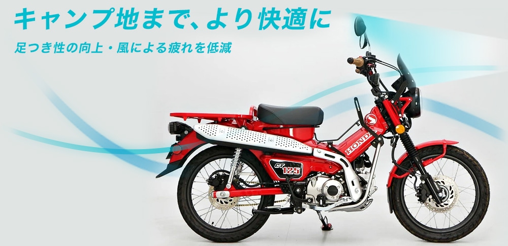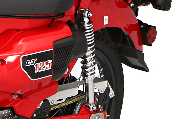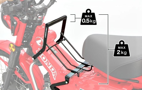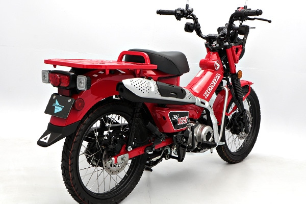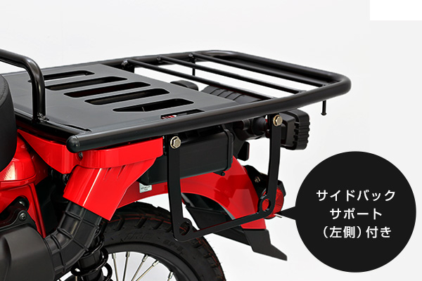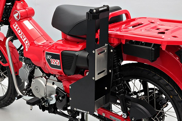 CT125の特徴でもある純正のダクトケースやツールボックスも、純正キャリア同様に装着できるようになっています。