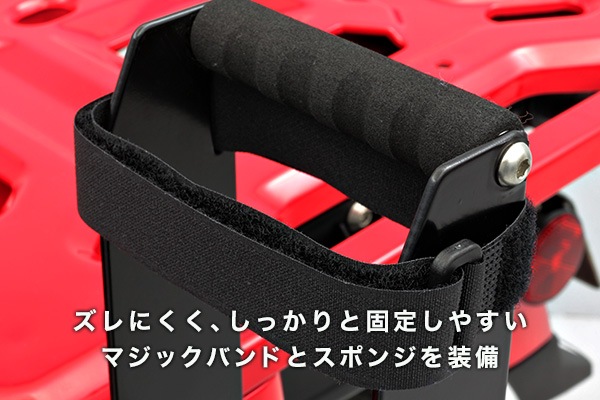 タンデム時や車両の取り回しにはもちろん、荷物の固定など何かと便利なグラブバーも装備で安心。