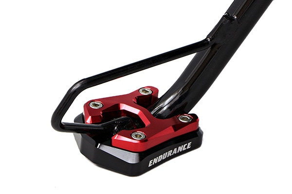やわらかい地面にスタンドを立てる際、車両や荷物が重いと沼のようにずぶずぶ沈んでいきがち。