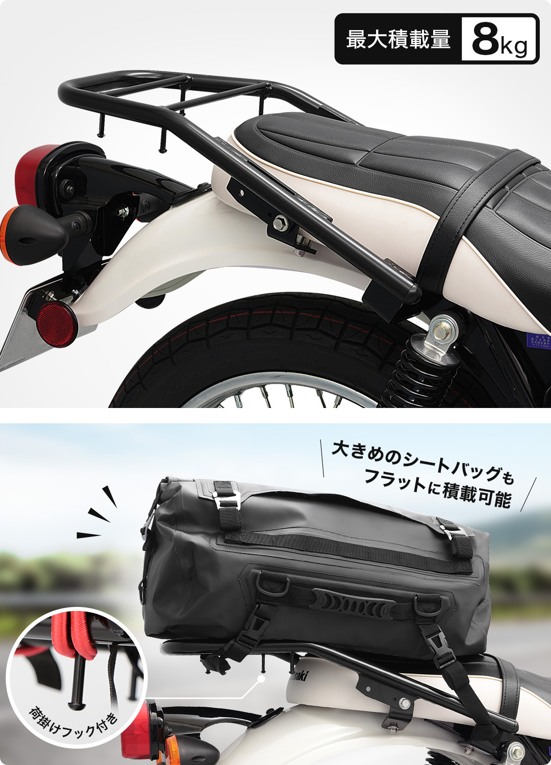 荷物をたっぷり積める頑丈なキャリアは、ツーリングから通勤まで幅広く活躍。