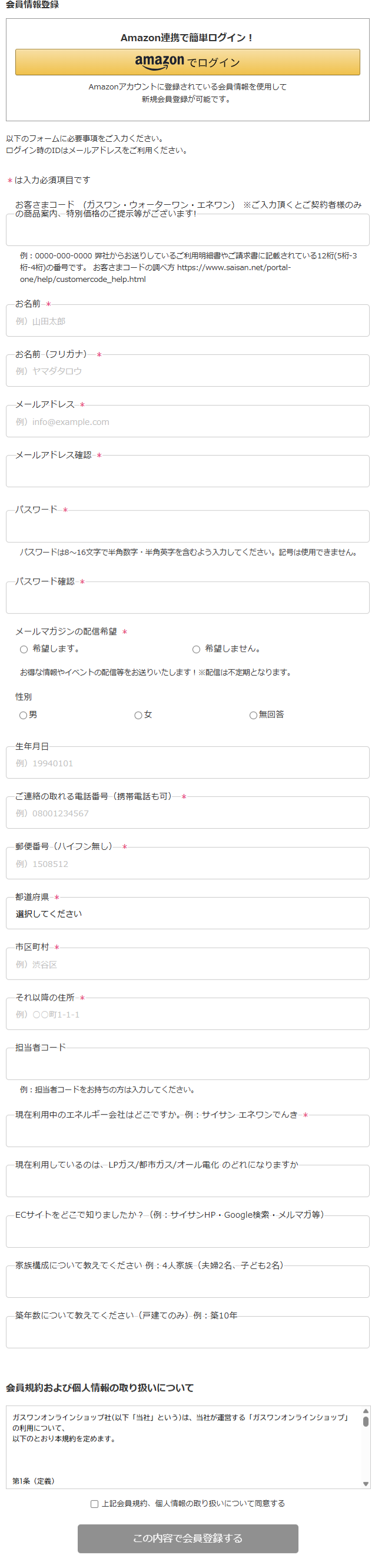 ※2 株式会社サイサンのサービス(ガス・水・電気)をご契約の方は、「サイサンご契約者様コード」の入力が必須となります。