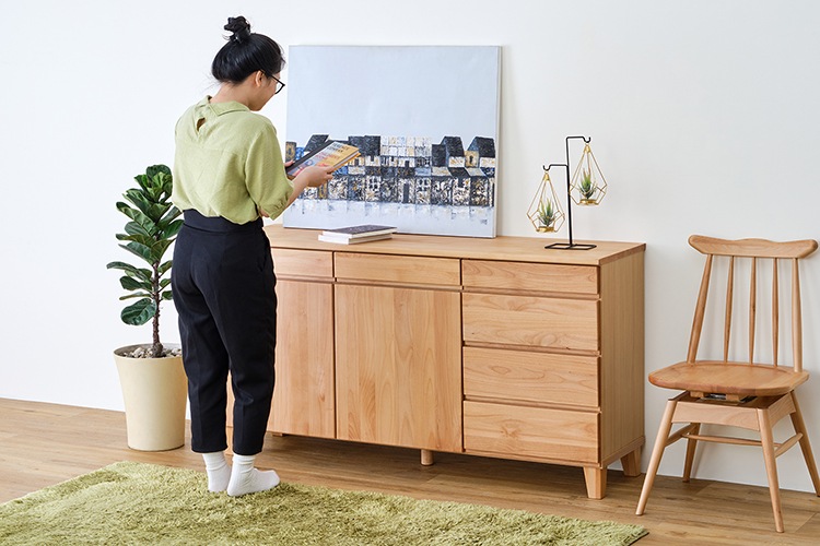 無垢材のチェストや収納家具は、大切な衣類や書類などを湿気から守ってくれる効果も期待できます。