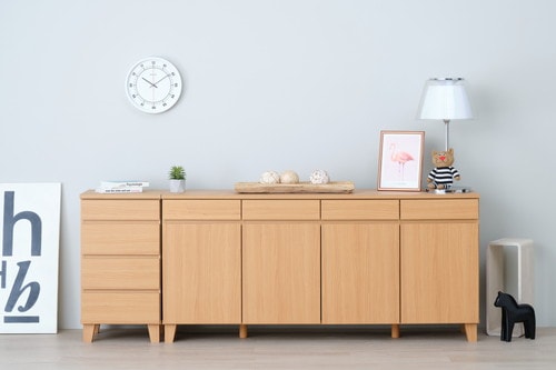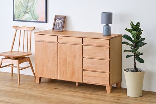 シンプルなデザインで場所や用途を選ばないサイドボード。