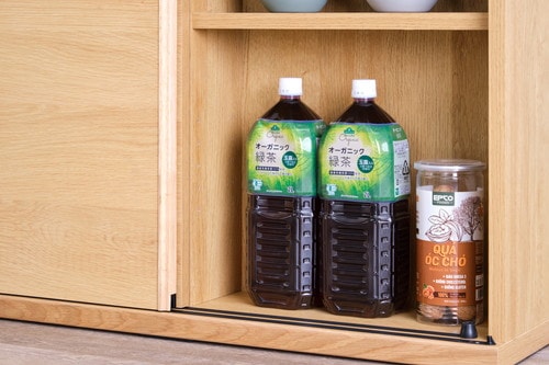 下段には2Lペットボトルが収納可能。防災用の保存水等を入れておくのにも最適です。