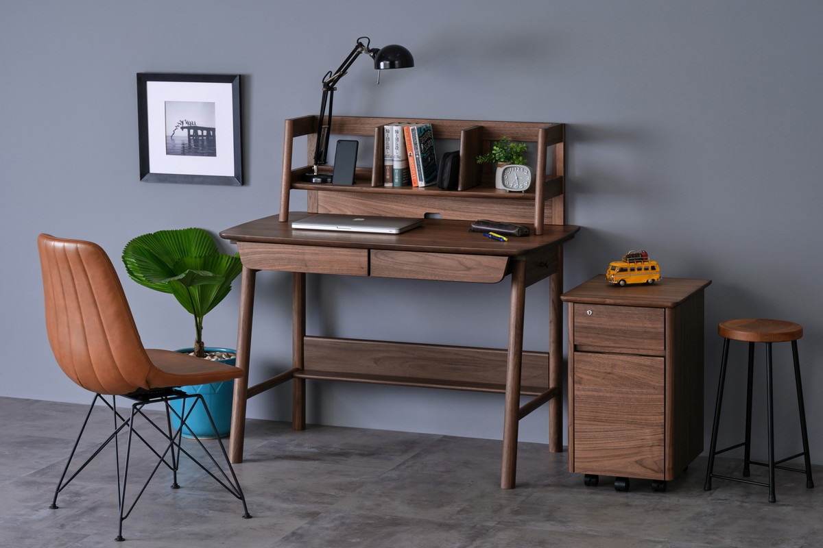 引き出しやワゴンがついた机なら、文具や教材をすっきり収納可能。上棚があれば教科書や参考書も整理しやすく、すぐに取り出せるため学習習慣の定着にもつながります。