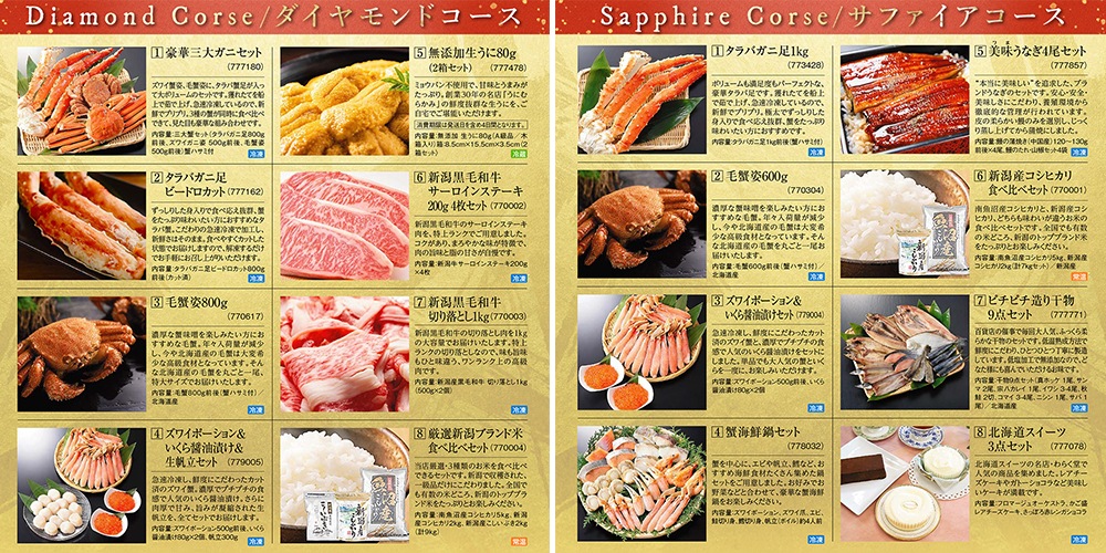 いずれもバラエティ豊かな8種類の商品からお好きなものひとつをお選びいただけます。